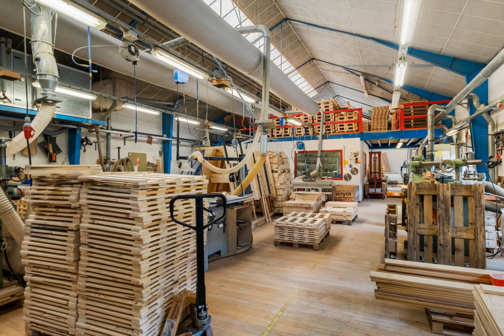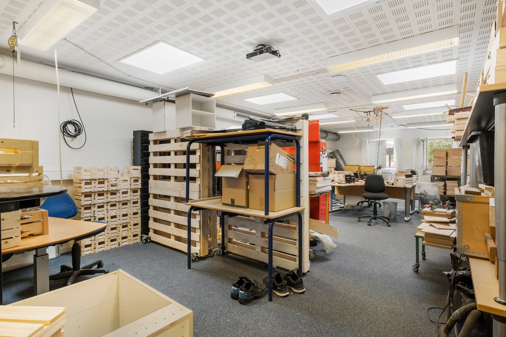 Ejendommen er opført i røde sten og indeholder hovedindgang med klinkegulv - forkontor, chefkontor - teknikrum, kopirum - kantine med plads til 50 siddende medarbejdere - kantine disk og køkken, lager Personaleindgang med klinkegulv, herre og dame omklædning og badefaciliteter - toiletter - toilet med håndvask og udgang til værksted med trægulv, forrum til maler kabine - snedkerværksted, toilet - værkførerkontor - indskudt etage som kan anvendes som lagerplads - værksted, op skærings rum - spån sugning - flere mindre værksteder og undervisningslokaler af forskellig karakter.
