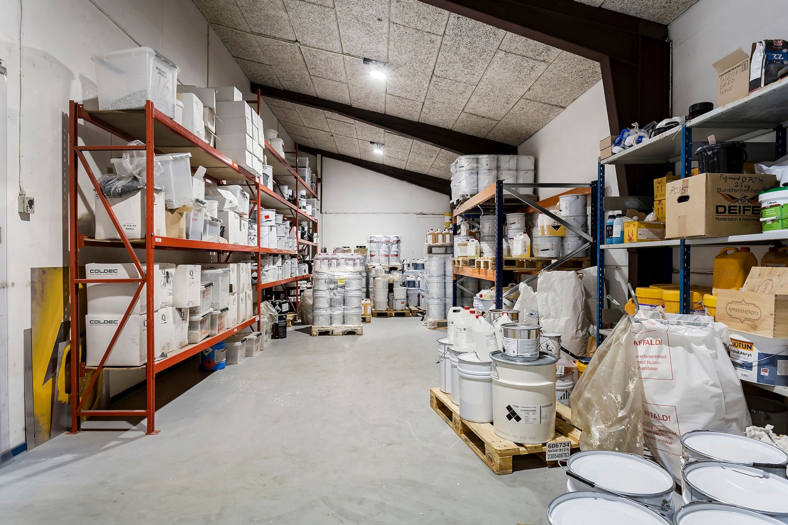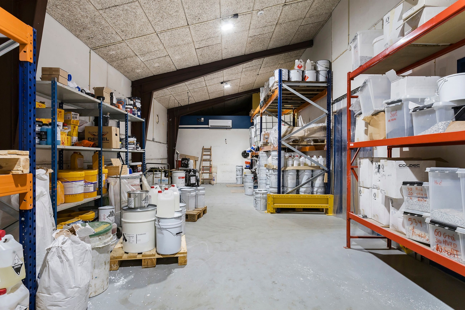 Ejendommen rummer lager- og produktionslokaler med tilhørende værkstedsafsnit og vaskefaciliteter samt sikringsrum og arkiv. Indretningen er funktionel og velegnet til mange typer erhverv.