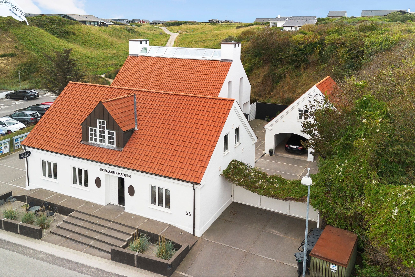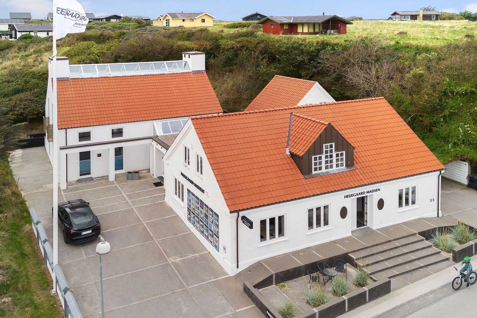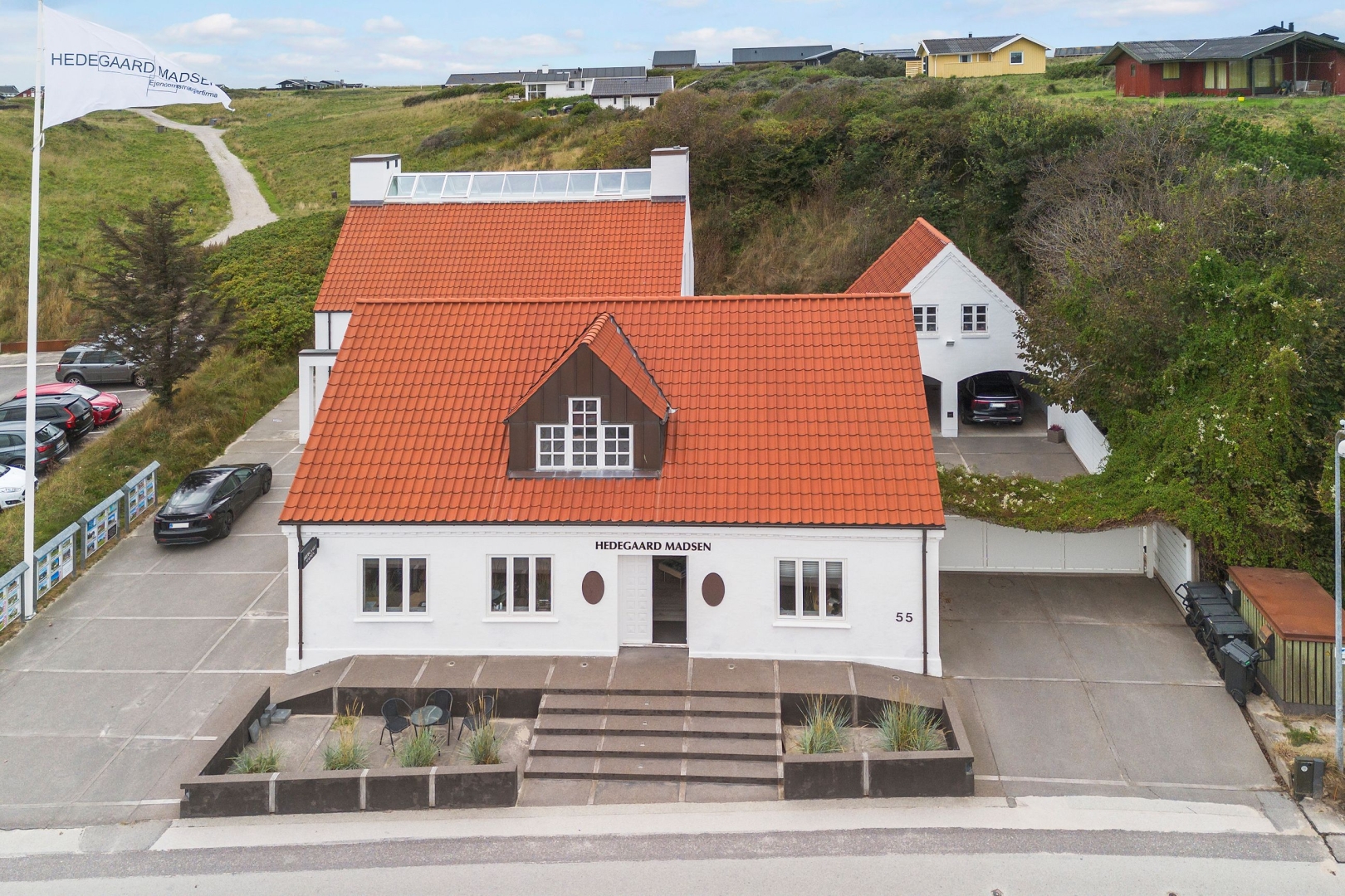 Ejendommen kan efter nærmere aftale med Hjørring Kommune delvis anvendes til fx klinik eller liberalt erhverv. Lønstrup er en af Vesterhavets mest charmerende kystbyer og kendt for sin unikke kombination af natur, ro og kultur. Byen byder på hyggelige caféer, specialbutikker og et levende kunsthåndværkermiljø med gallerier, glaspustere og keramikere. Naturen er altid tæt på med dramatiske kystskrænter og smukke klitlandskaber, mens det ikoniske Rubjerg Knude Fyr står som et vartegn og et levende vidnesbyrd om kystens historie. Lønstrup er både et attraktivt ferieområde og et ideelt sted at bo for den, der ønsker nærhed til havet, afslappet atmosfære og et stærkt lokalsamfund.Strandvejen 55 er en liebhaverejendom i absolut særklasse. Her får man en unik kombination af historisk ejendom, moderne komfort og attraktive erhvervsmuligheder ? alt sammen midt i Lønstrups livlige bymidte.