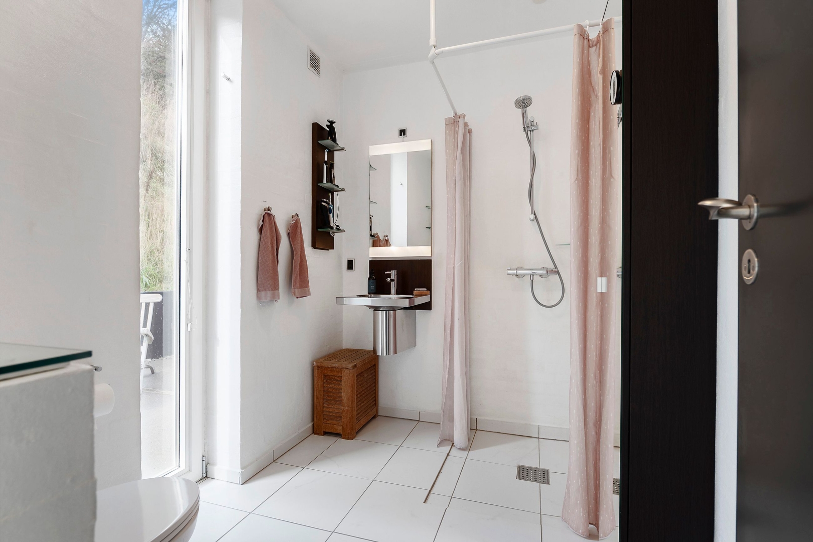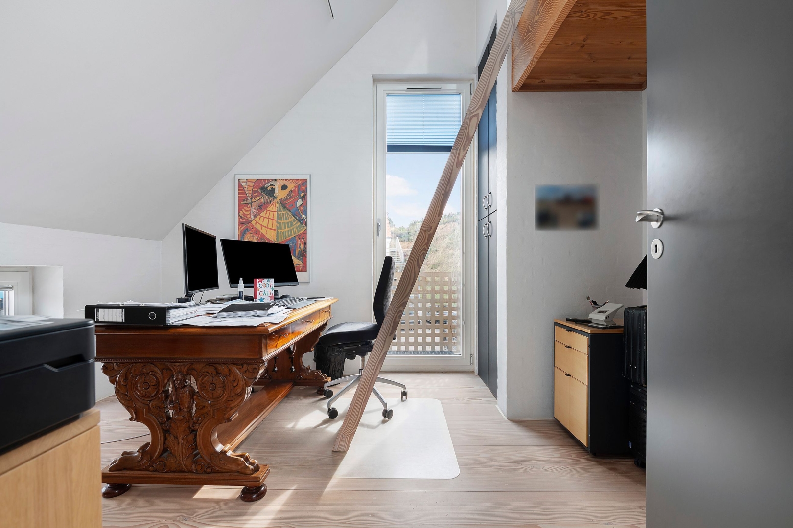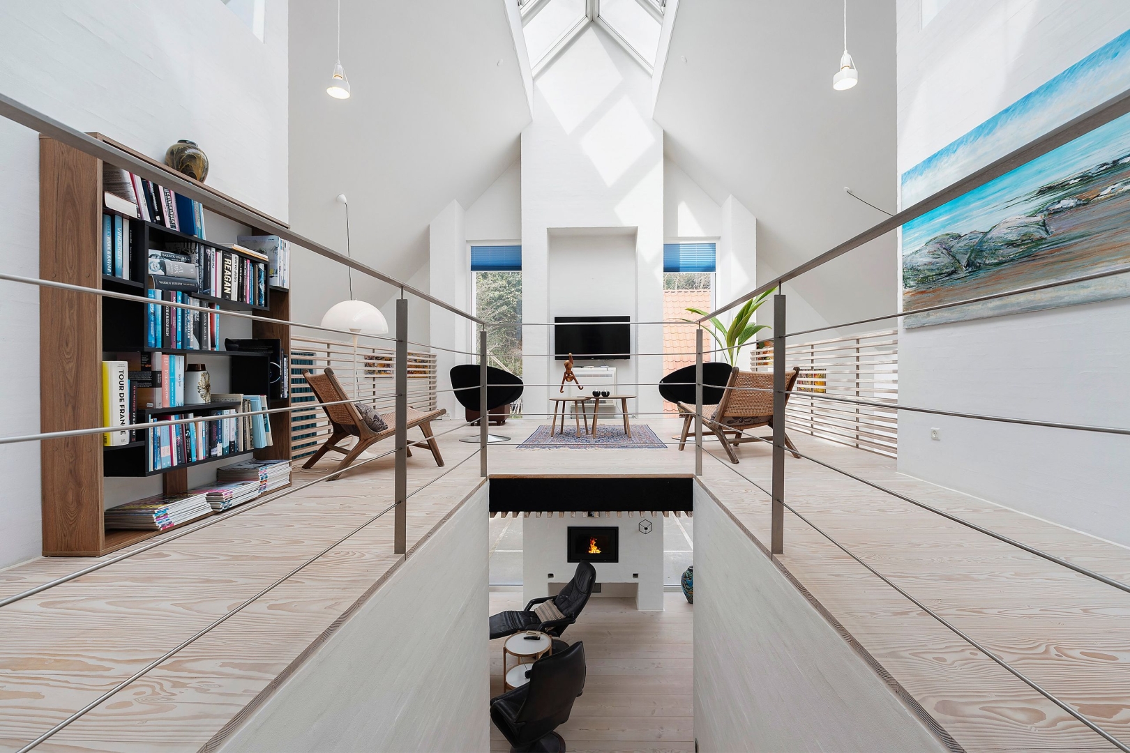 Denne markante og synlige liebhaverejendom ligger centralt placeret midt i Lønstrups charmerende bymidte. Her forenes historisk sjæl og moderne komfort i en ejendom, der på én og samme tid tilbyder rummelig bolig og attraktive erhvervsmuligheder.Den oprindelige bygning er opført i 1905, mens en eksklusiv tilbygning fra 2005, tegnet af arkitekt Jørn Schütze, tilfører ejendommen ekstra boligareal i et smagfuldt design, hvor materialevalget er nøje afstemt med bl.a. fantastiske Dinesen gulve i alle opholdsrum i den nye afdeling. De hvide facader, det røde tegltag, kobbertagrenderne og den smukke kobberinddækkede kvist mod Strandvejen skaber en harmonisk helhed og et indtryk af kvalitet.Ejendommen rummer i alt 347 m² bolig og 73 m² erhverv, hvortil der hører en dobbeltmuret garage med to aluporte, elektrisk port i indkørsel og et godt aktivitetsrum eller gildesal ovenpå. Havearbejdet skal I ikke bekymre jer om, idet udenomsarealerne er anlagt med støbte betonfelter smukt adskilt af jerntræ, hvilket giver et stilrent og vedligeholdelsesvenligt udtryk.Planløsningen er opdelt i to bygningsafsnit, der er smukt forbundet. I vest- og mellembygningen finder man et eksklusivt håndbygget Søgaard køkken i massiv valnød med luksus hvidevarer fra Gaggenau og en elegant svævende køkkenø. Køkkenalrum er åbent mod opholdsstuen, som er udstyret med pejseindsats og store vestvendte vinduespartier, der giver et skønt lysindfald og adgang til den lukkede, ugenerede gårdhave. Gulvvarme, massive Dinesen plankegulve med en imponerende længde på op til 15 meter samt en indbygget varmepumpe, der kan opvarme og køle hvilket giver rummet en særlig eksklusiv atmosfære. I stueplan findes desuden badeværelse med bruseniche, et soveværelse med skydedørsgarderobe samt 2 yderligere værelser, et med direkte adgang til opholdsstuen og et med udgang til den sydlige indkørsel. Værelset kan måske anvendes til atelier eller andetFra stuen fører en trappe op til første sal, hvor en imponerende opholdsstue med loft til kip, rytterlys og varmepumpe udgør hjertet. Her er også to gavlværelser med adgang til hems hvor I finder en himmelseng med stjernekig, indbyggede skabe, loft til kip og udgang til altan, kontor/mindre værelse samt et badeværelse med bruseniche.Østbygningen byder i stueplan på et køkken med hvide fronter og køkkenø, et bryggers med klinkegulv og el-gulvvarme samt plads til vaskefaciliteter, kontor med 3- 4 kontor arbejdspladser og luft-til-luft varmepumpe, yderligere et godt kontor, en rummelig entre og et kundetoilet. På første sal finder man et stort badeværelse med spa, dobbelt håndvask, marmorklinker og direkte adgang til sauna, et værelse samt et repos med synlige bjælker, loft til kip og tagvindue. Endelig rummer et stort værelse eller opholdsrum skydedørsskabe, loft til kip og udgang til terrasse.Ejendommen er ikke blot et hjem, men også en investering. Den østvendte bygning har i en årrække været udlejet til ejendomsmæglerfirmaet Hedegaard Madsen og indbringer en årlig lejeindtægt på kr. 220.000 + moms og forbrug.