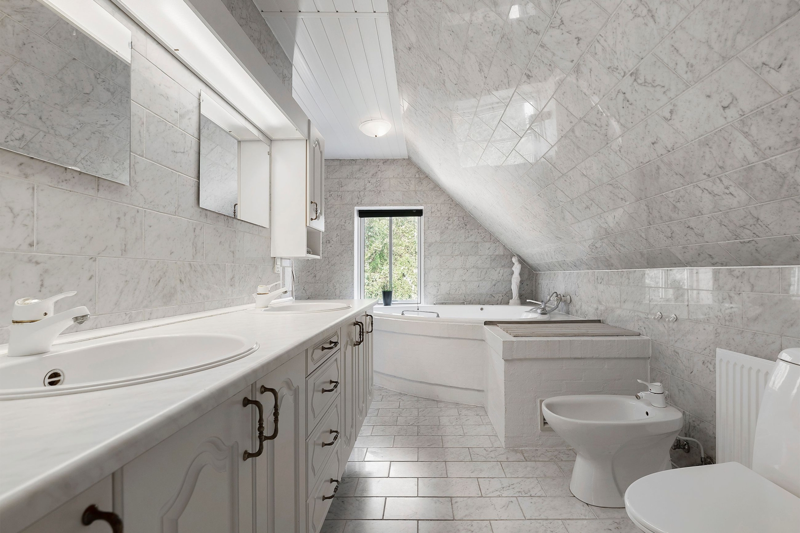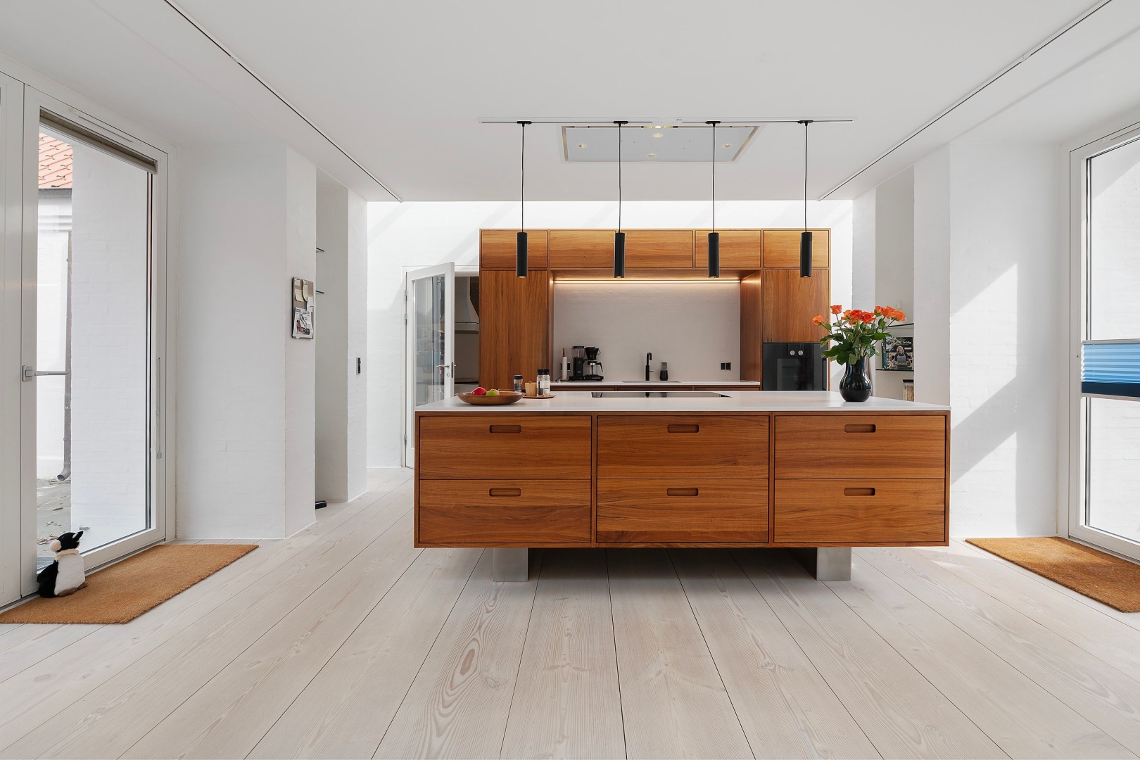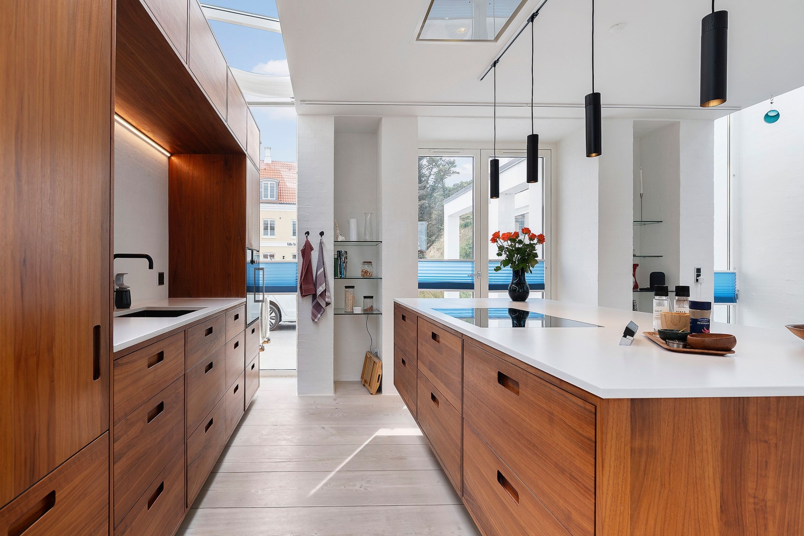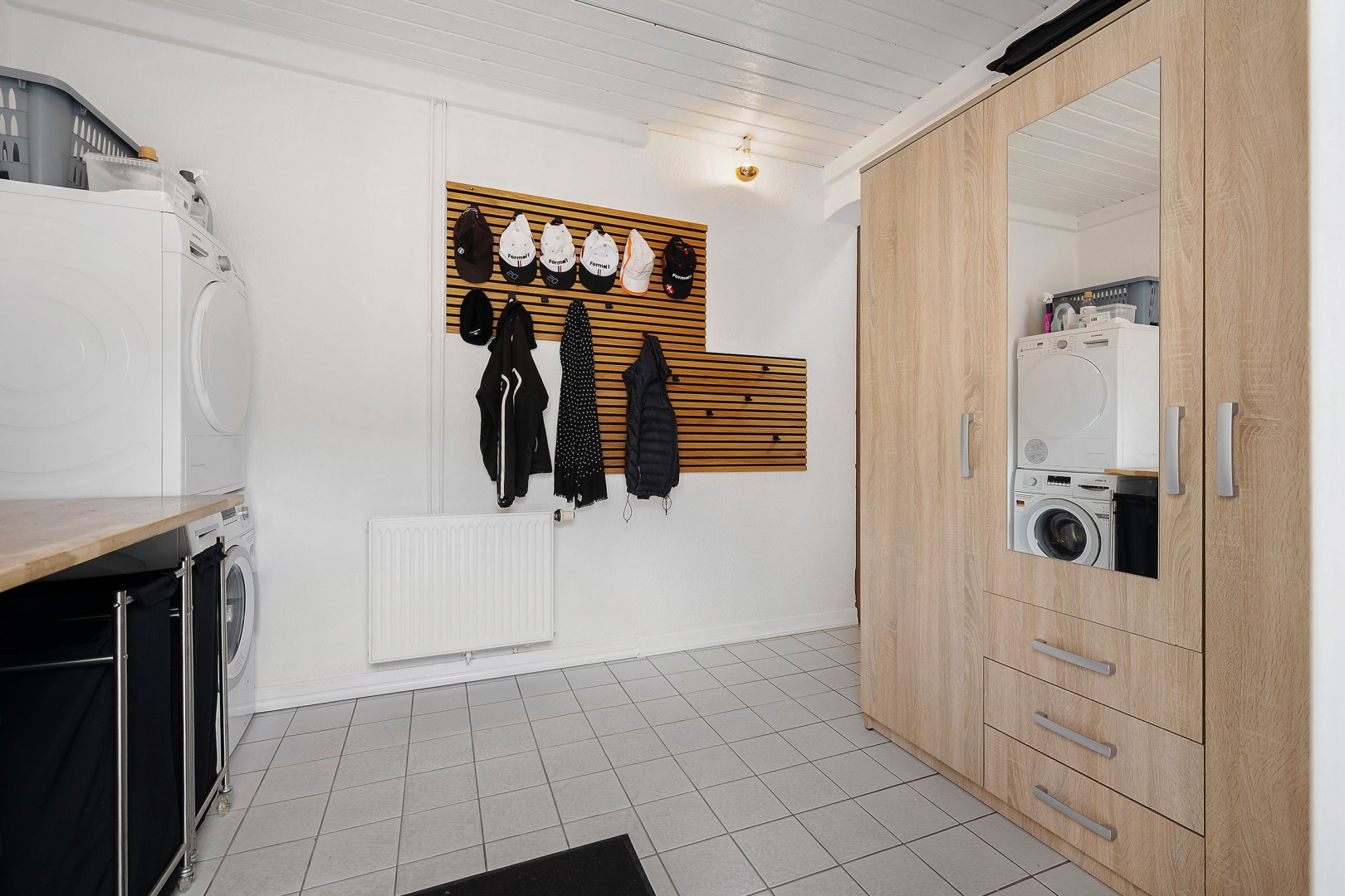 Denne markante og synlige liebhaverejendom ligger centralt placeret midt i Lønstrups charmerende bymidte. Her forenes historisk sjæl og moderne komfort i en ejendom, der på én og samme tid tilbyder rummelig bolig og attraktive erhvervsmuligheder.Den oprindelige bygning er opført i 1905, mens en eksklusiv tilbygning fra 2005, tegnet af arkitekt Jørn Schütze, tilfører ejendommen ekstra boligareal i et smagfuldt design, hvor materialevalget er nøje afstemt med bl.a. fantastiske Dinesen gulve i alle opholdsrum i den nye afdeling. De hvide facader, det røde tegltag, kobbertagrenderne og den smukke kobberinddækkede kvist mod Strandvejen skaber en harmonisk helhed og et indtryk af kvalitet.Ejendommen rummer i alt 347 m² bolig og 73 m² erhverv, hvortil der hører en dobbeltmuret garage med to aluporte, elektrisk port i indkørsel og et godt aktivitetsrum eller gildesal ovenpå. Havearbejdet skal I ikke bekymre jer om, idet udenomsarealerne er anlagt med støbte betonfelter smukt adskilt af jerntræ, hvilket giver et stilrent og vedligeholdelsesvenligt udtryk.Planløsningen er opdelt i to bygningsafsnit, der er smukt forbundet. I vest- og mellembygningen finder man et eksklusivt håndbygget Søgaard køkken i massiv valnød med luksus hvidevarer fra Gaggenau og en elegant svævende køkkenø. Køkkenalrum er åbent mod opholdsstuen, som er udstyret med pejseindsats og store vestvendte vinduespartier, der giver et skønt lysindfald og adgang til den lukkede, ugenerede gårdhave. Gulvvarme, massive Dinesen plankegulve med en imponerende længde på op til 15 meter samt en indbygget varmepumpe, der kan opvarme og køle hvilket giver rummet en særlig eksklusiv atmosfære. I stueplan findes desuden badeværelse med bruseniche, et soveværelse med skydedørsgarderobe samt 2 yderligere værelser, et med direkte adgang til opholdsstuen og et med udgang til den sydlige indkørsel. Værelset kan måske anvendes til atelier eller andetFra stuen fører en trappe op til første sal, hvor en imponerende opholdsstue med loft til kip, rytterlys og varmepumpe udgør hjertet. Her er også to gavlværelser med adgang til hems hvor I finder en himmelseng med stjernekig, indbyggede skabe, loft til kip og udgang til altan, kontor/mindre værelse samt et badeværelse med bruseniche.Østbygningen byder i stueplan på et køkken med hvide fronter og køkkenø, et bryggers med klinkegulv og el-gulvvarme samt plads til vaskefaciliteter, kontor med 3- 4 kontor arbejdspladser og luft-til-luft varmepumpe, yderligere et godt kontor, en rummelig entre og et kundetoilet. På første sal finder man et stort badeværelse med spa, dobbelt håndvask, marmorklinker og direkte adgang til sauna, et værelse samt et repos med synlige bjælker, loft til kip og tagvindue. Endelig rummer et stort værelse eller opholdsrum skydedørsskabe, loft til kip og udgang til terrasse.Ejendommen er ikke blot et hjem, men også en investering. Den østvendte bygning har i en årrække været udlejet til ejendomsmæglerfirmaet Hedegaard Madsen og indbringer en årlig lejeindtægt på kr. 220.000 + moms og forbrug.