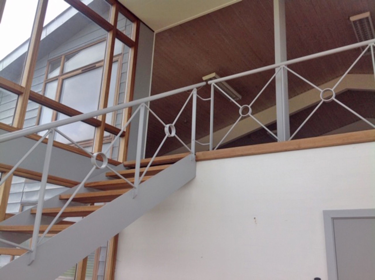 fører en trappe op til førstesalen, hvor der findes et stort møderum/showroom samt arkivfaciliteter. I stueplan