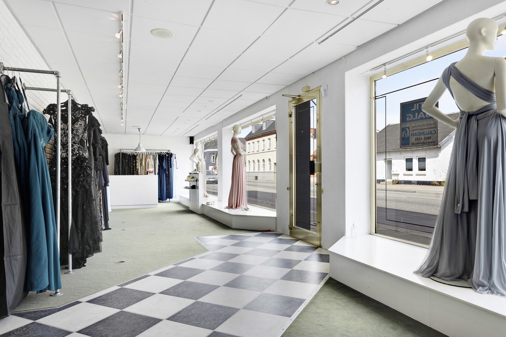 Ejendommen indeholder 2 regulære butikslokaler med tæppe og linoleum belægning, malede lofter og malede og tapetserede vægge og meget bred facade med gode udstillingsvinduer.