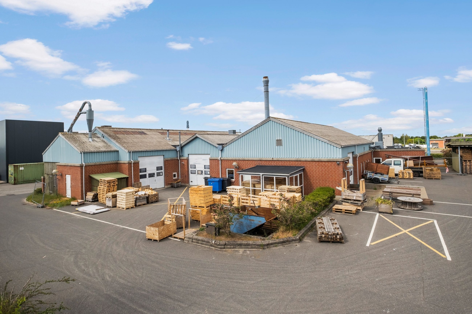 Ejendommen er opført i 1988 og er blevet om- og tilbygget i 2001, hvilket har resulteret i en moderne ogfleksibel bygning, opført i røde sten og med mange anvendelsesmuligheder - særligt velegnet tilvirksomheder med behov for både administration og produktion eller håndværk.