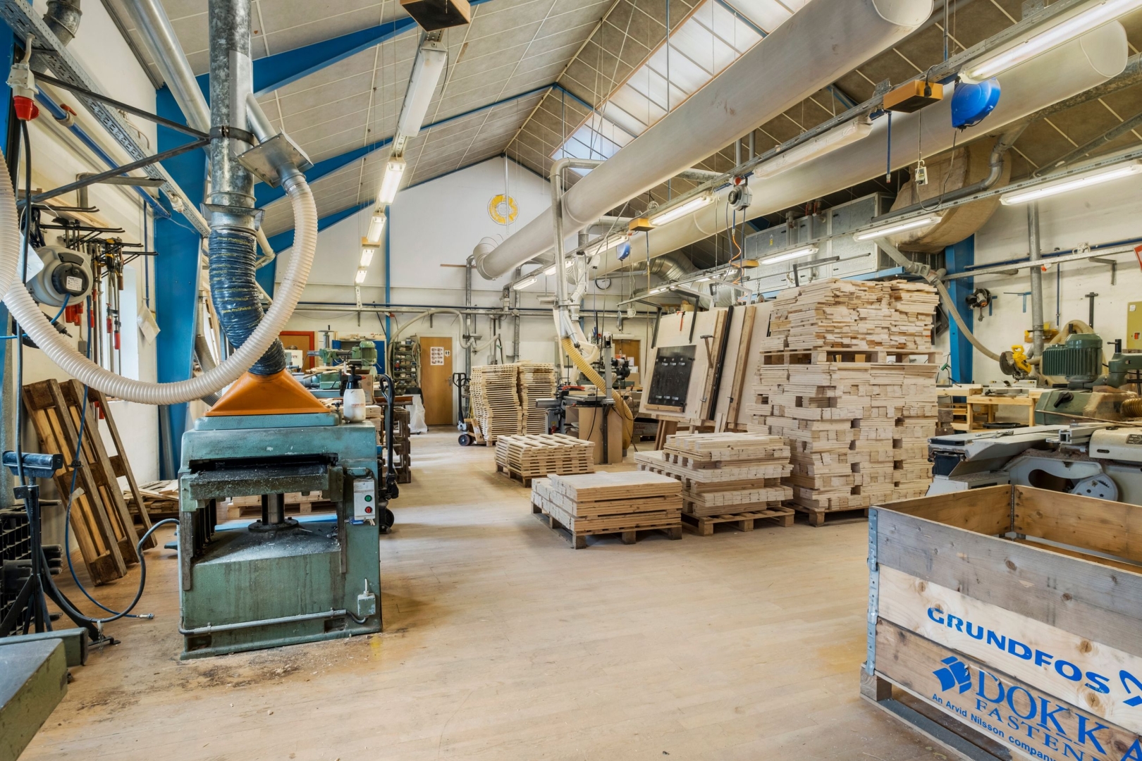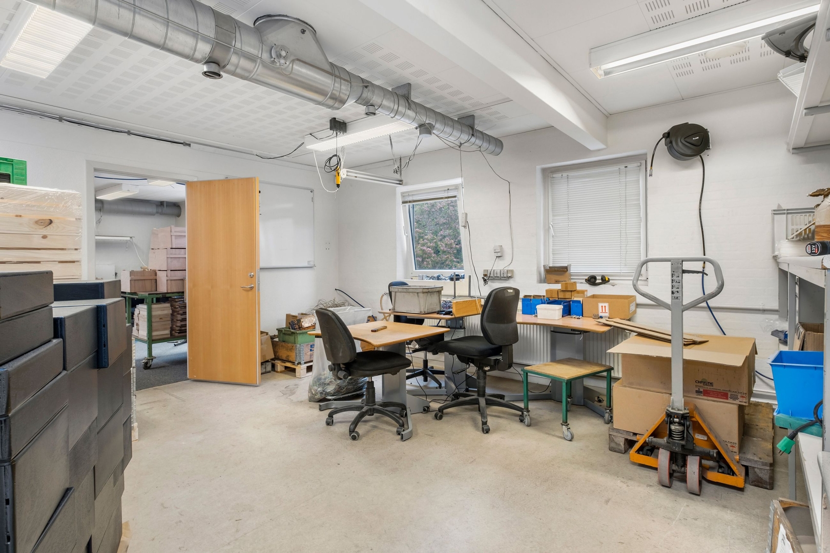 Direkte udgang til værkstedsareal med trægulv
