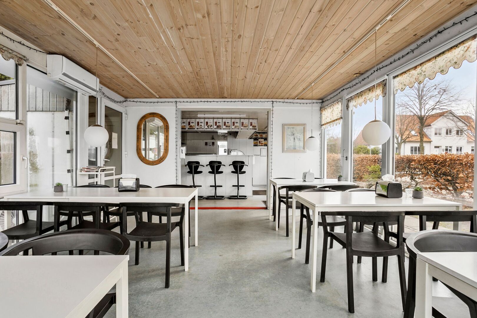 Restaurationslokale med plads til både små og store selskaber (5 firemandsborde og 3 tomandsborde)