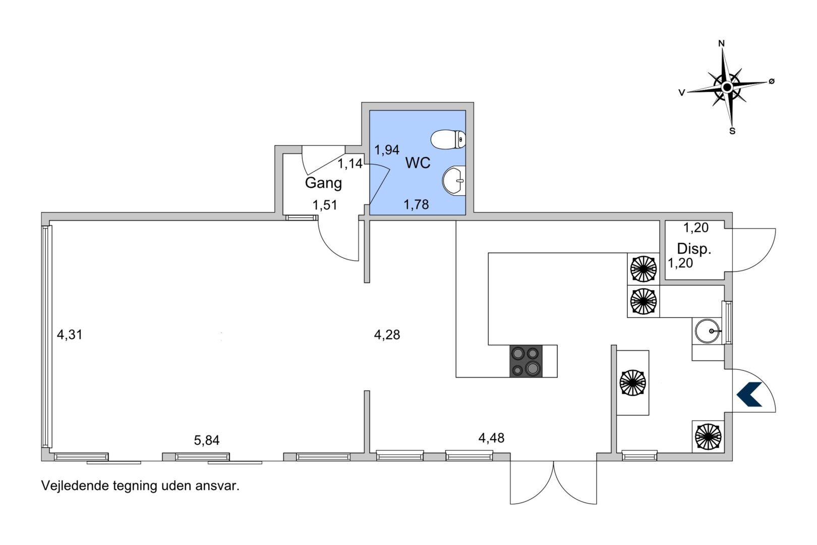 Grillbaren har et areal på ca. 72 m² og byder på funktionelle og velindrettede faciliteter, herunder: