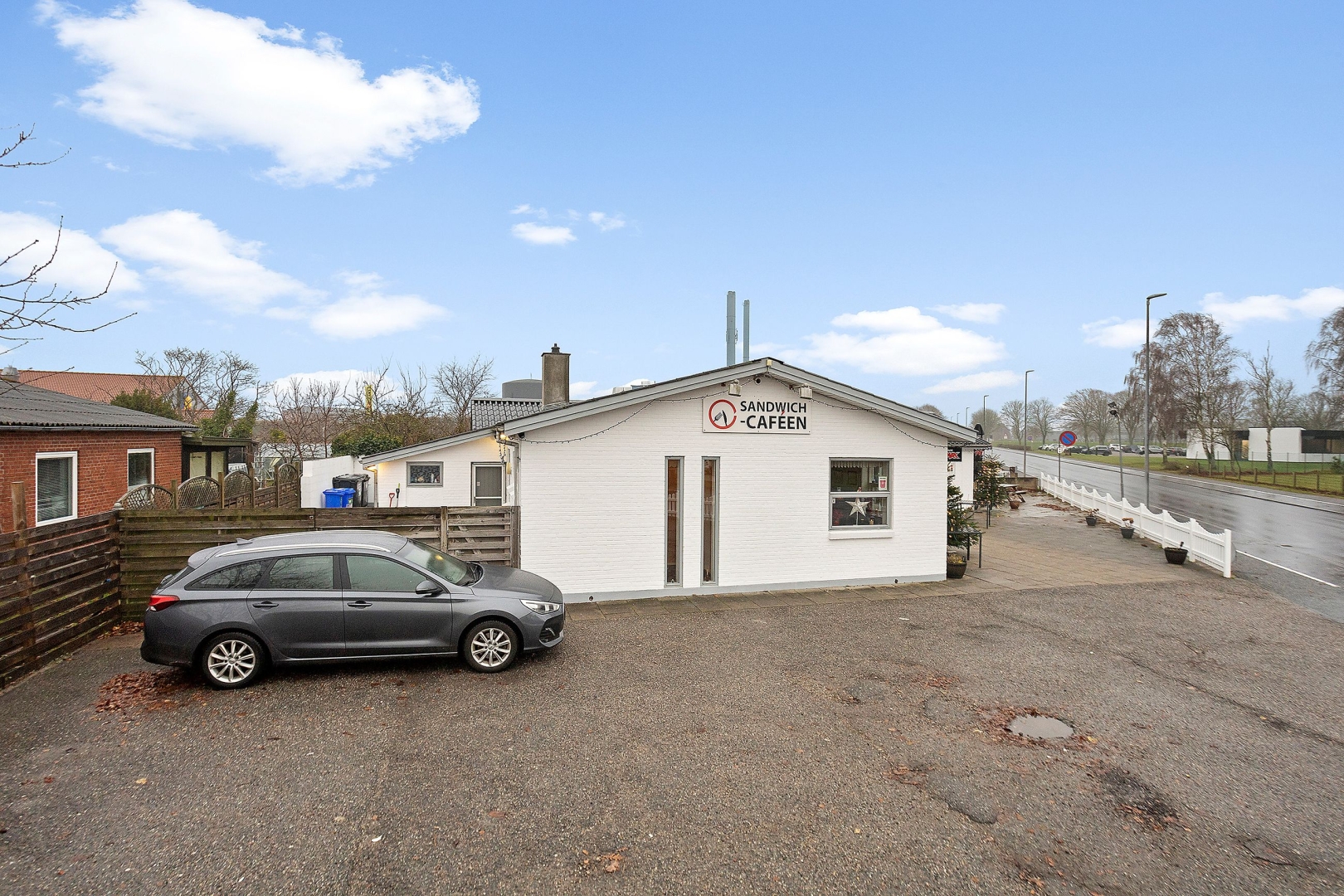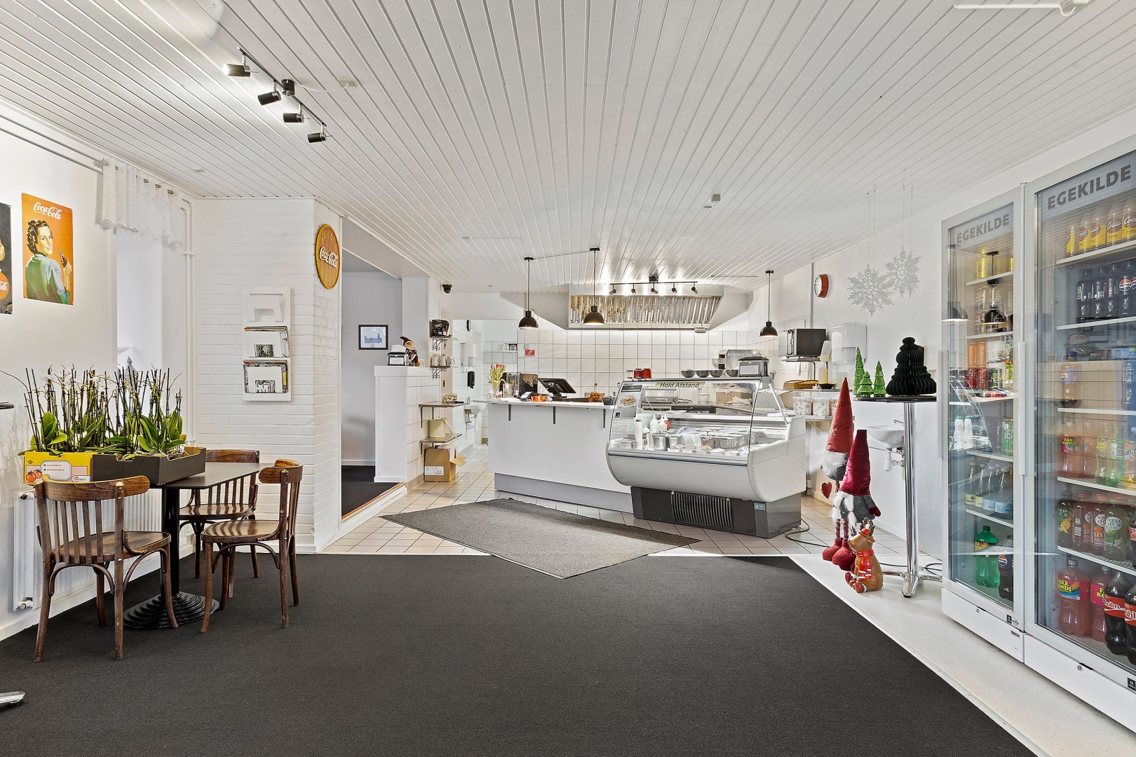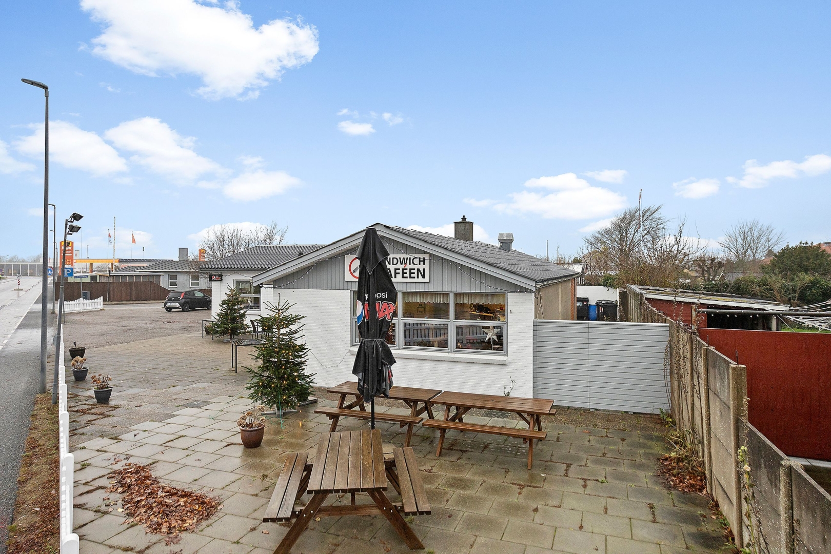 Caféen er beliggende i egen flot og velholdt bygning, der præsenterer sig indbydende både ude og inde. Det hyggelige caféområde rummer 16 siddepladser og en velindrettet betjeningsdisk med alt nødvendigt udstyr til produktion af sandwiches, burgere m.m. både til takeaway og servering på stedet.