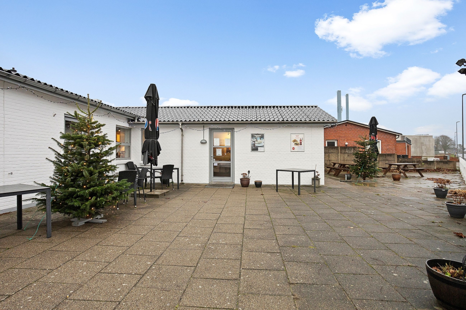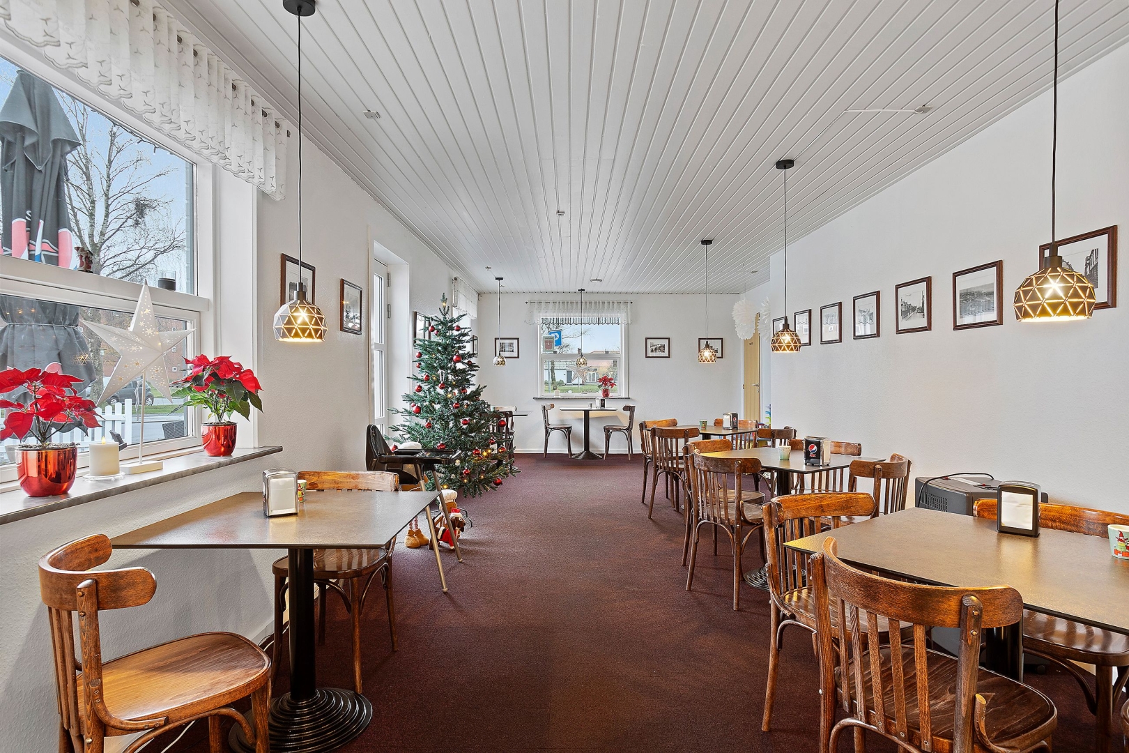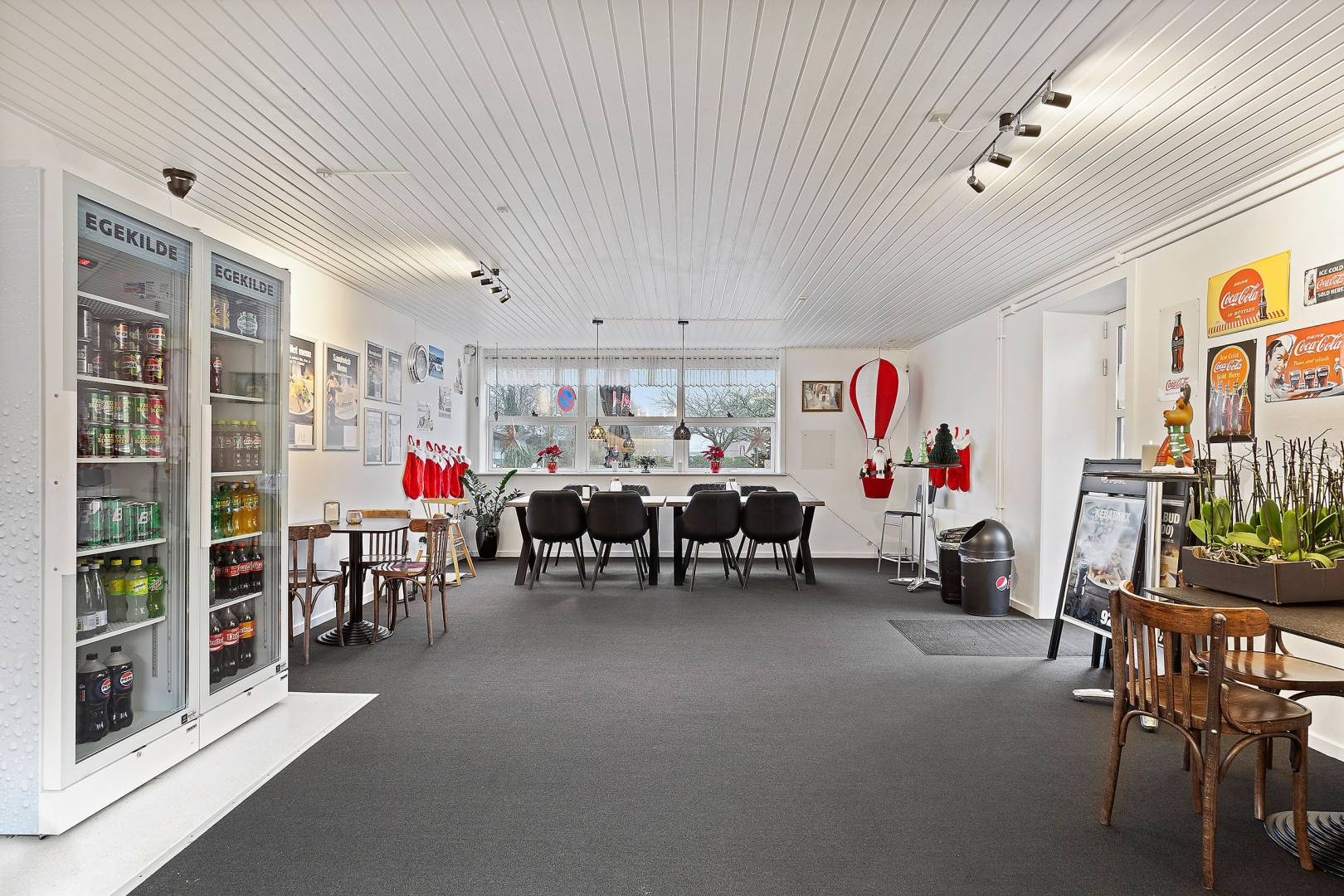 Caféen er beliggende i egen flot og velholdt bygning, der præsenterer sig indbydende både ude og inde. Det hyggelige caféområde rummer 16 siddepladser og en velindrettet betjeningsdisk med alt nødvendigt udstyr til produktion af sandwiches, burgere m.m. både til takeaway og servering på stedet.