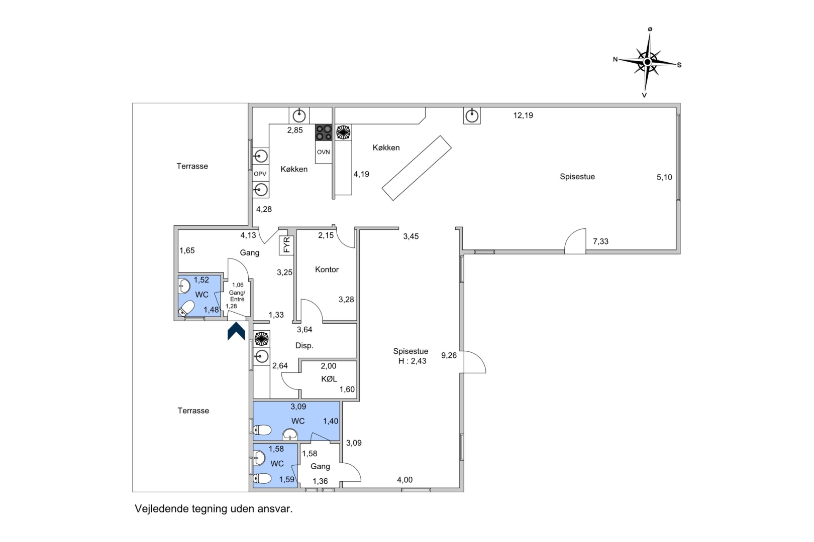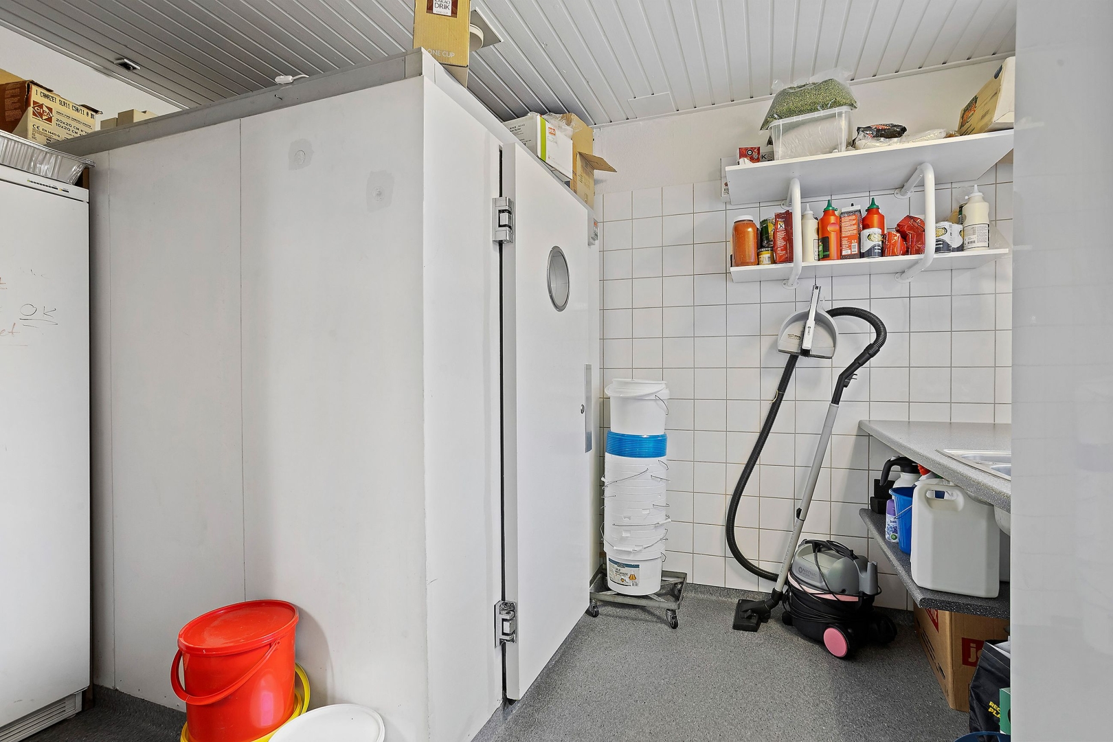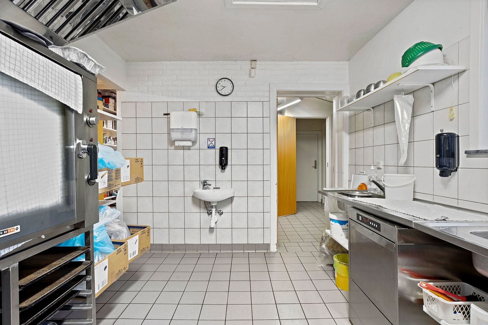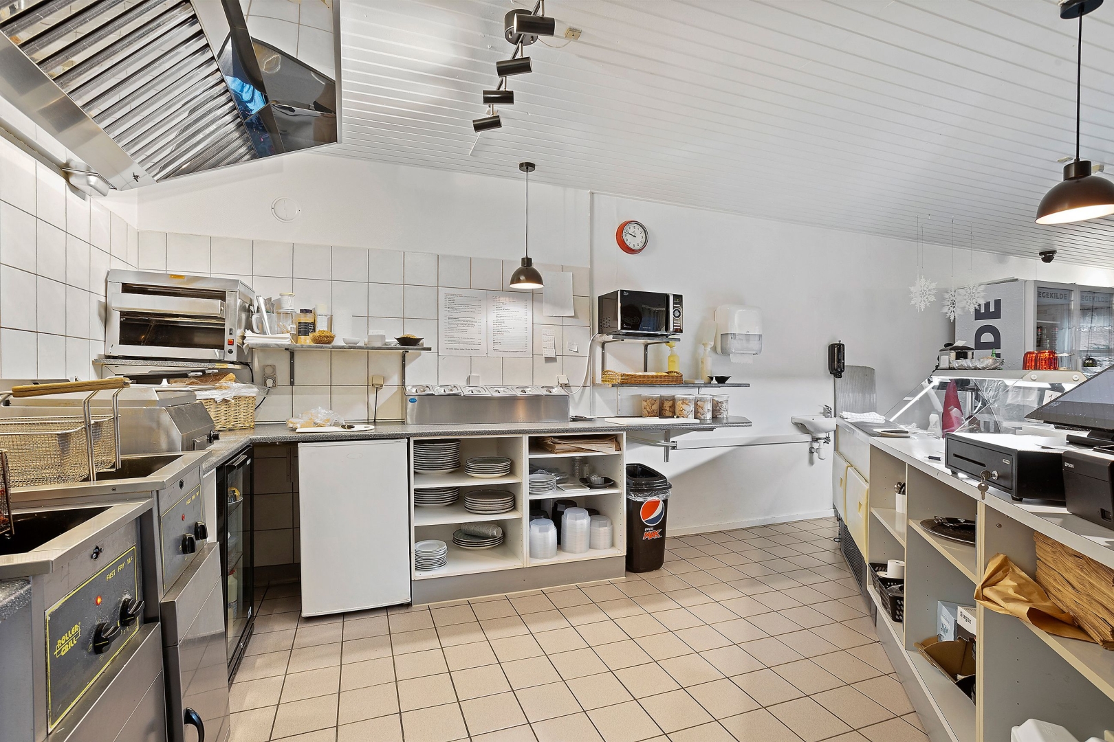 I det tilstødende lokale er der yderligere plads til 40 gæster samt adgang til mellemgang, herre- og dametoiletter, personaleindgang, omklædning og personaletoilet. Dertil kommer et stort og funktionelt restaurationskøkken med stålvaske, stålborde, industriopvasker, ovn og et bredt udvalg af professionelt køkkenudstyr.