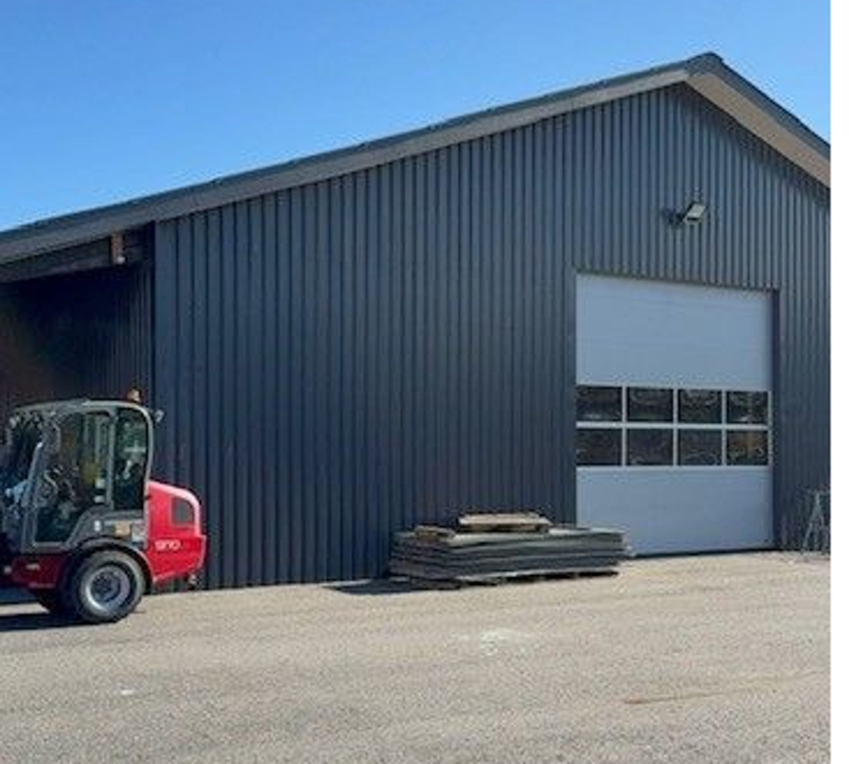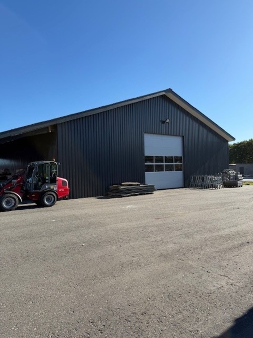 Velbeliggende 598 m2 nyere lagerbygning med god port og loftshjøjde i Sæby syd