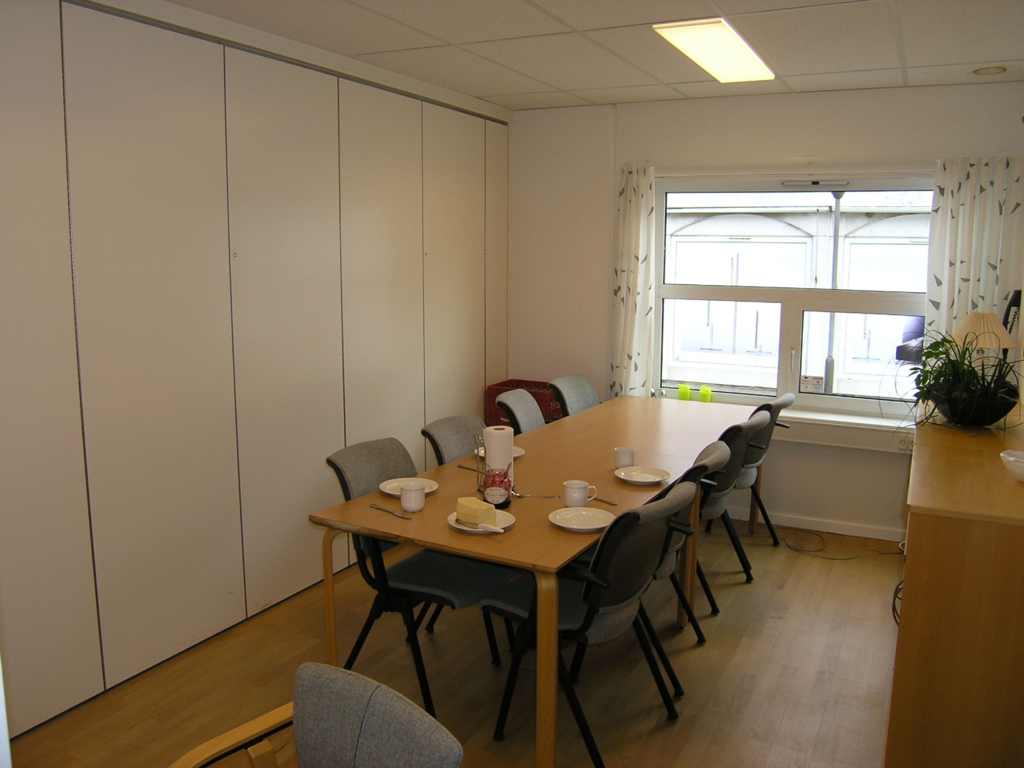Lejemålet indeholder desuden et separat kontor, et rummeligt mødelokale, et lager-/teknikrum, en mellemgang, to toiletter samt et veludstyret køkken med spiseplads, som fungerer som et naturligt samlingspunkt for medarbejderne.