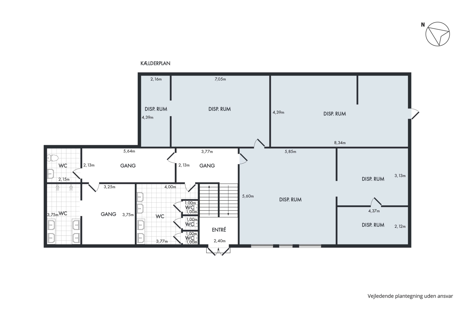 Underetage/kælder indeholder, forrum, stort disponibelt rum - tidligere omklædning og bad, lager, tidligere rum til bruser og bad, opbevaring, den anden del af kælderen indeholder, bad og toilet og vask, mellemgang, kundetoilet, forrum/ omklædning og baderum og 4 håndvaske, lager, teknikrum.