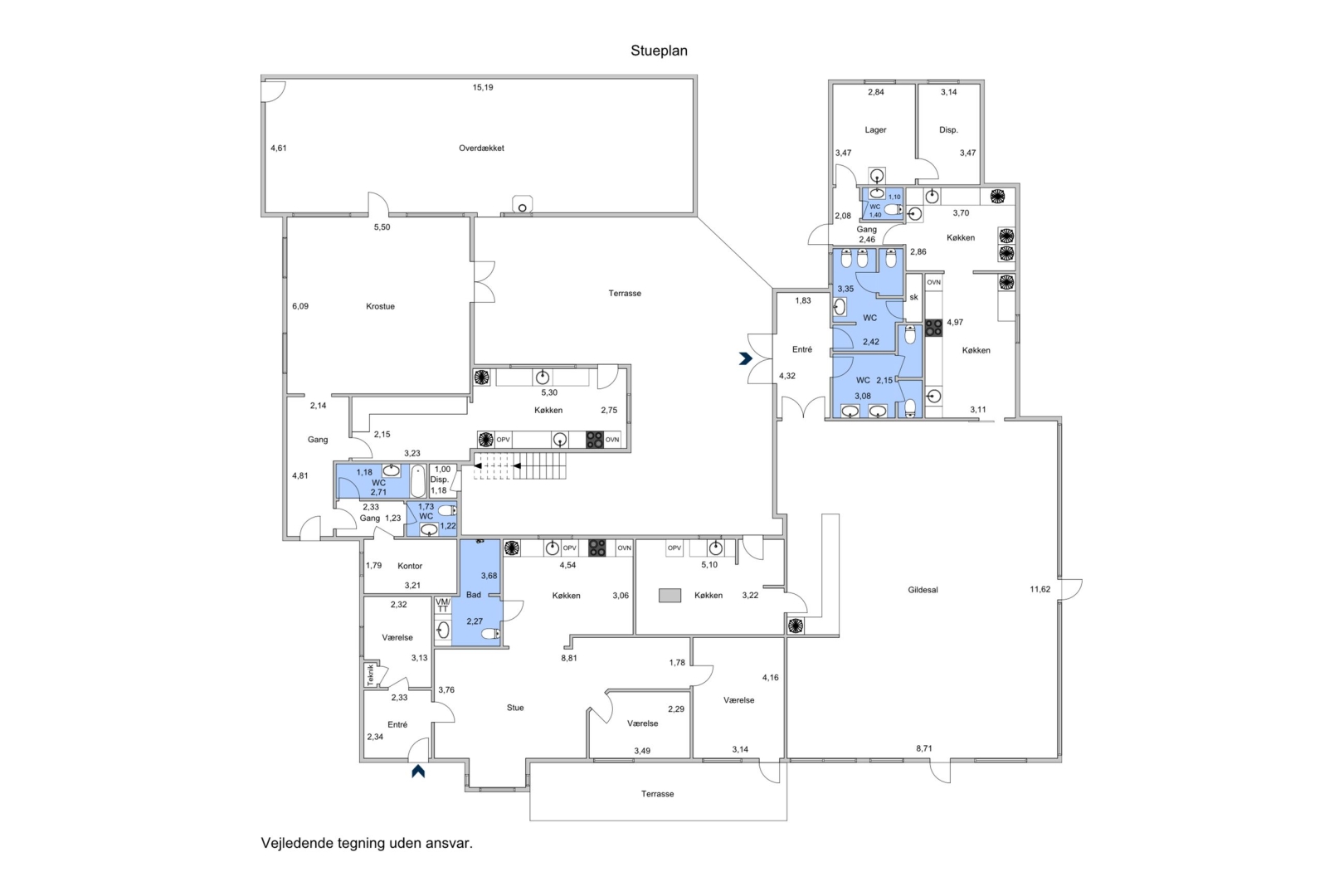 ·Selskabslokale: Et stort regulært selskabslokale, der er udstyret med et stort restaurationskøkken, grovkøkken, toiletter samt tilhørende udearealer.