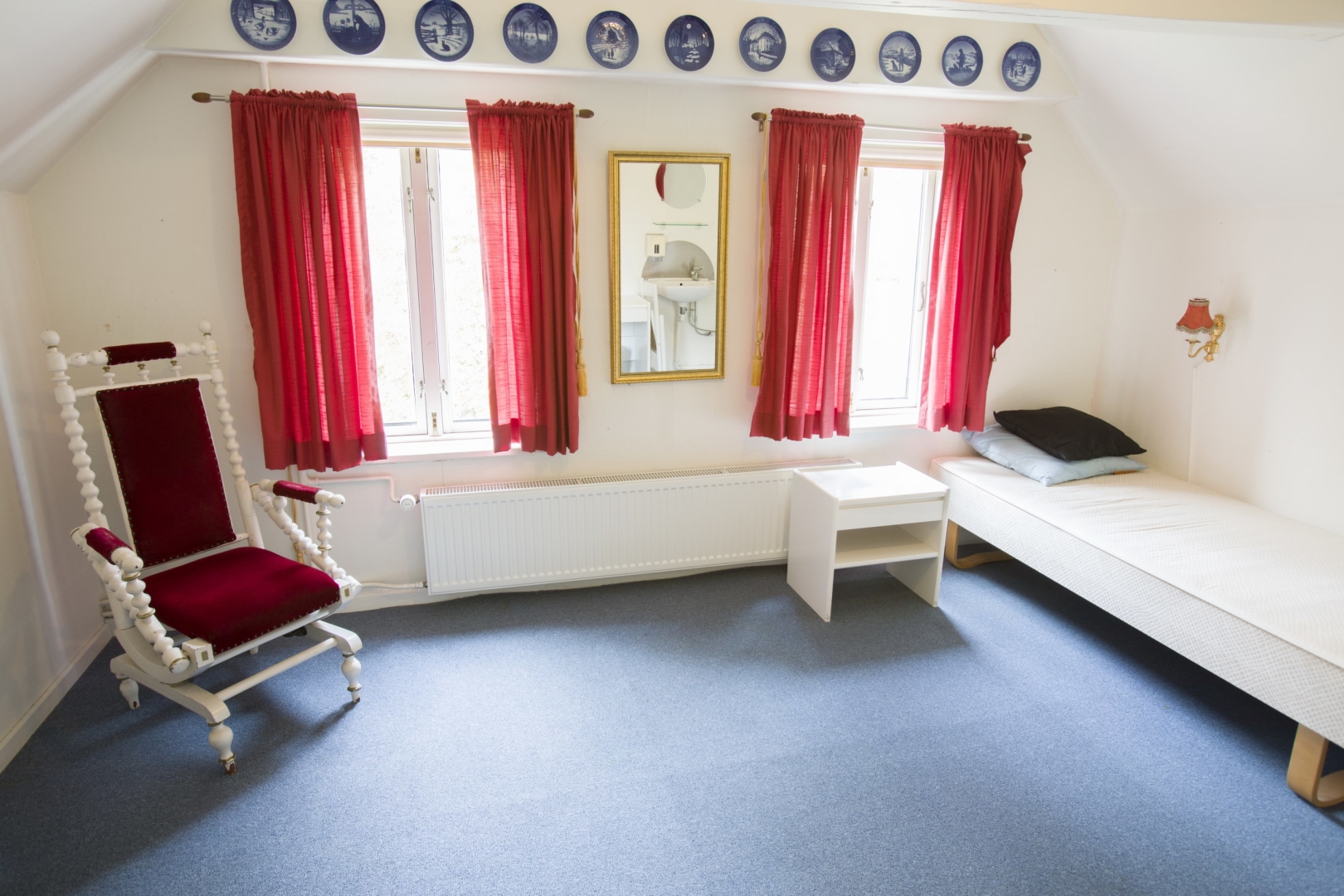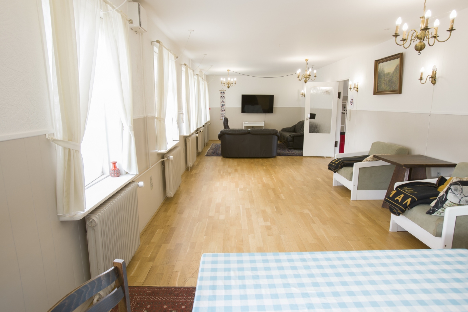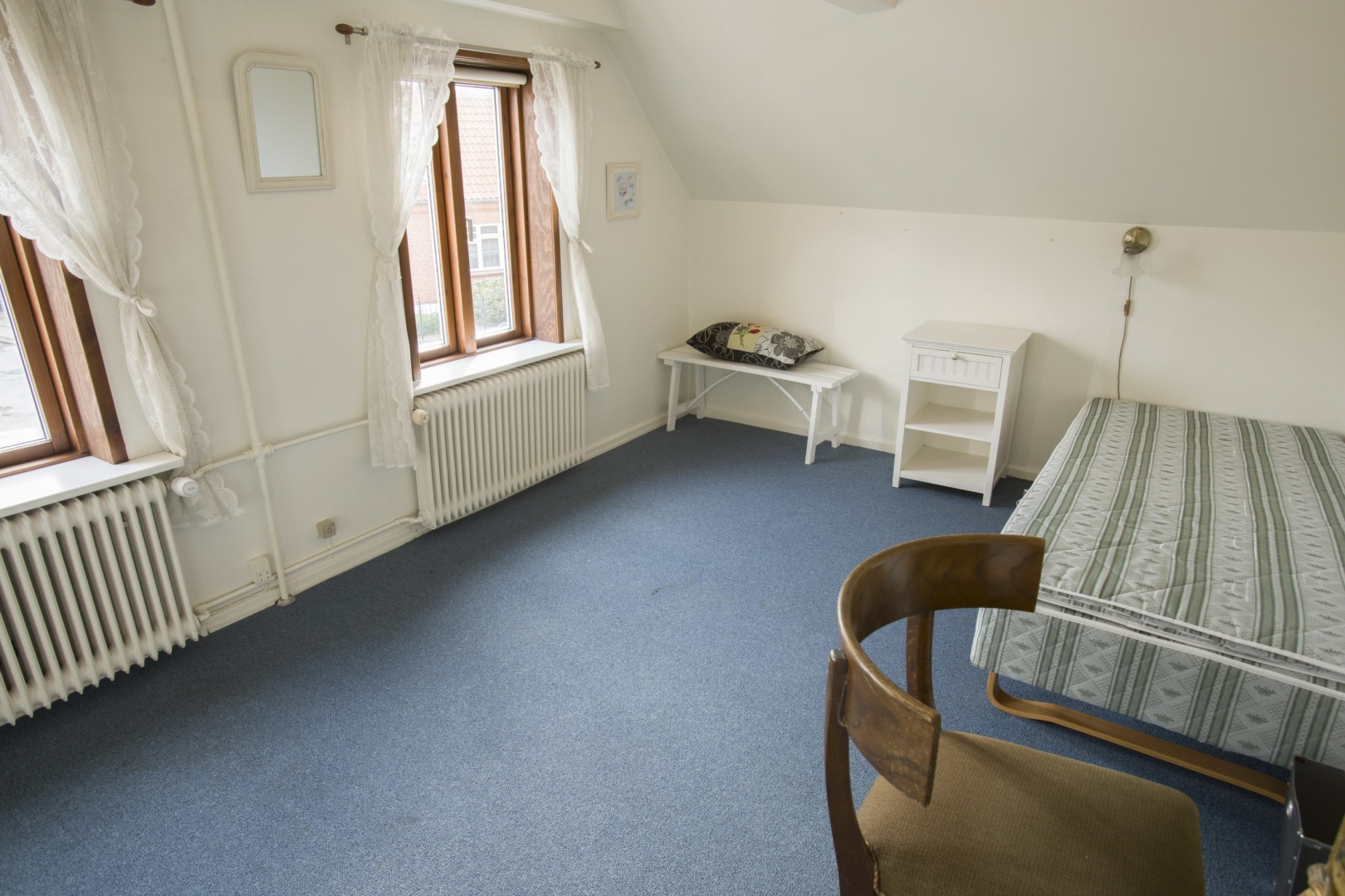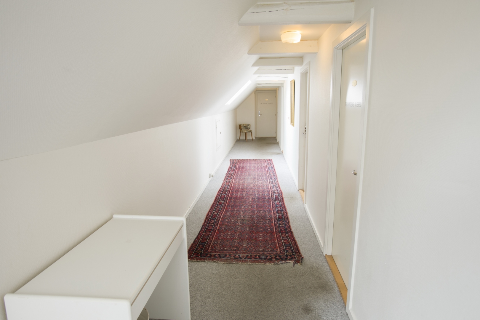 1. sal indeholder - fordelergang - 6 gode værelser - lille badeværelse med brus og 2 toiletter.