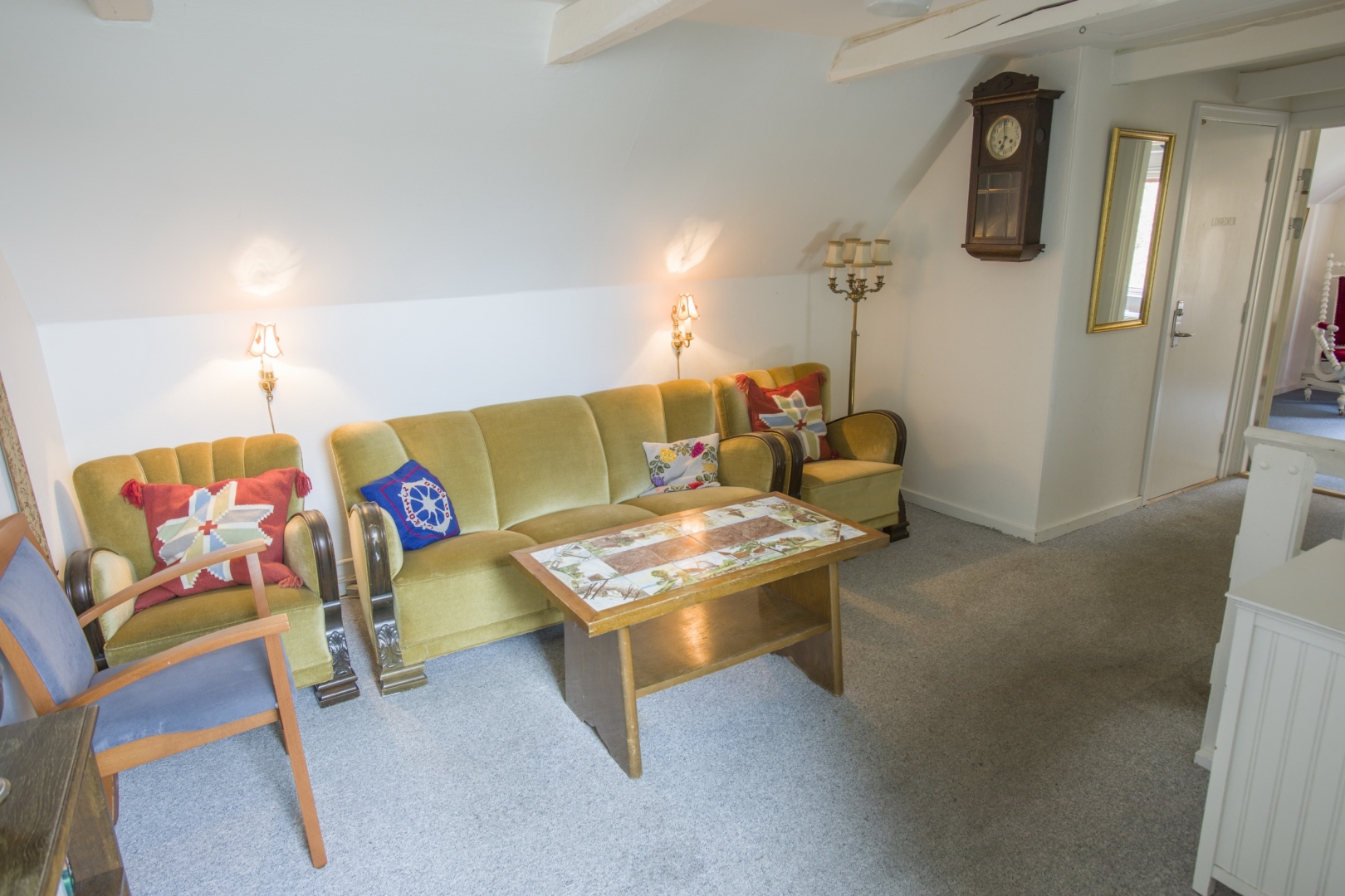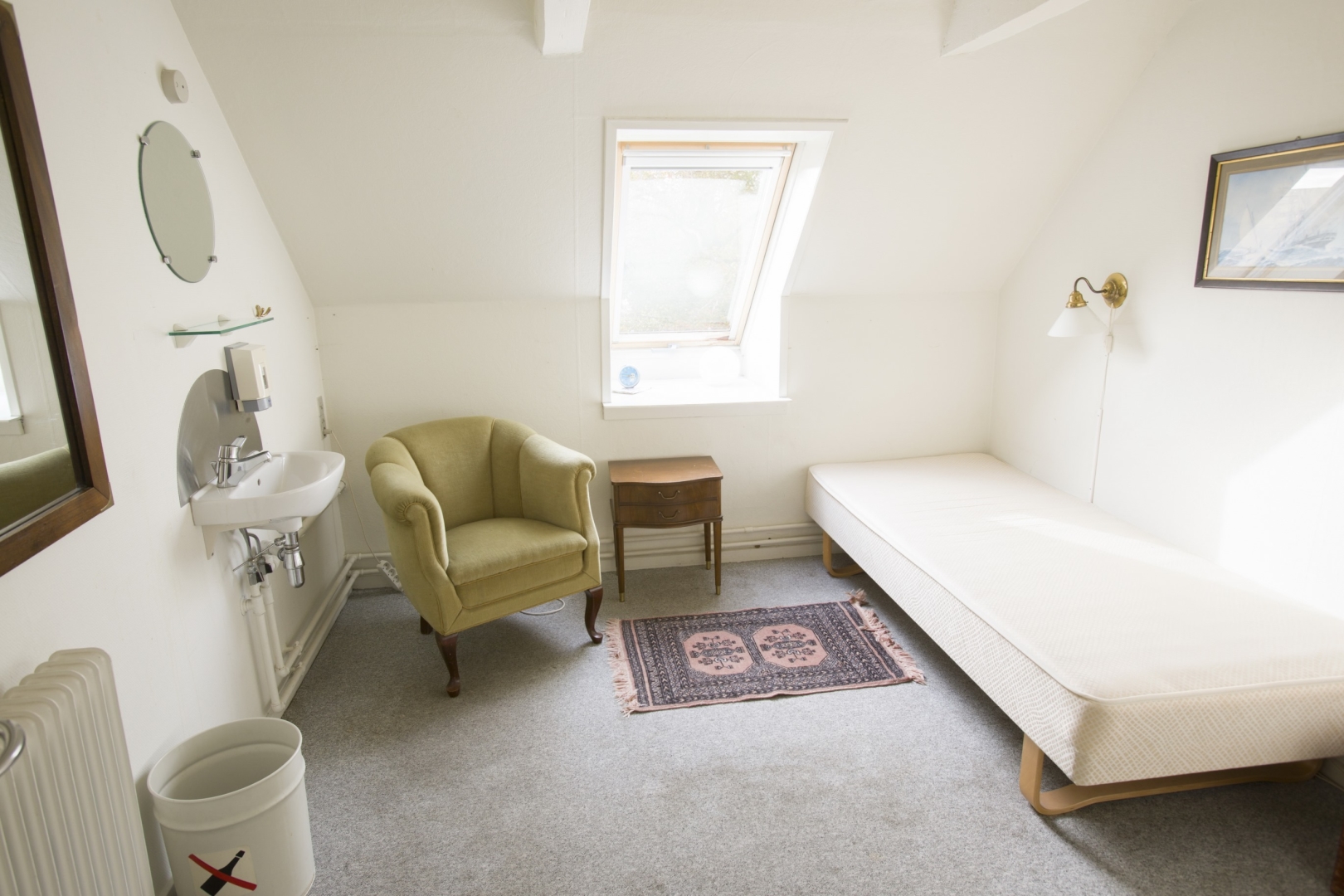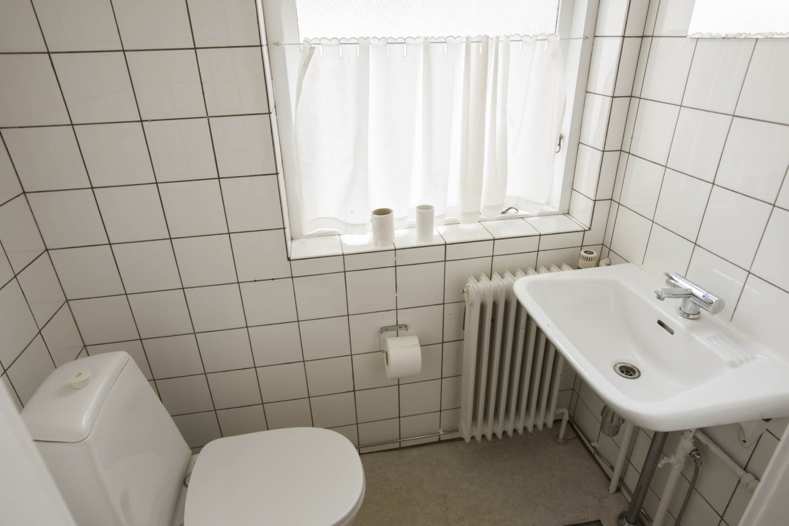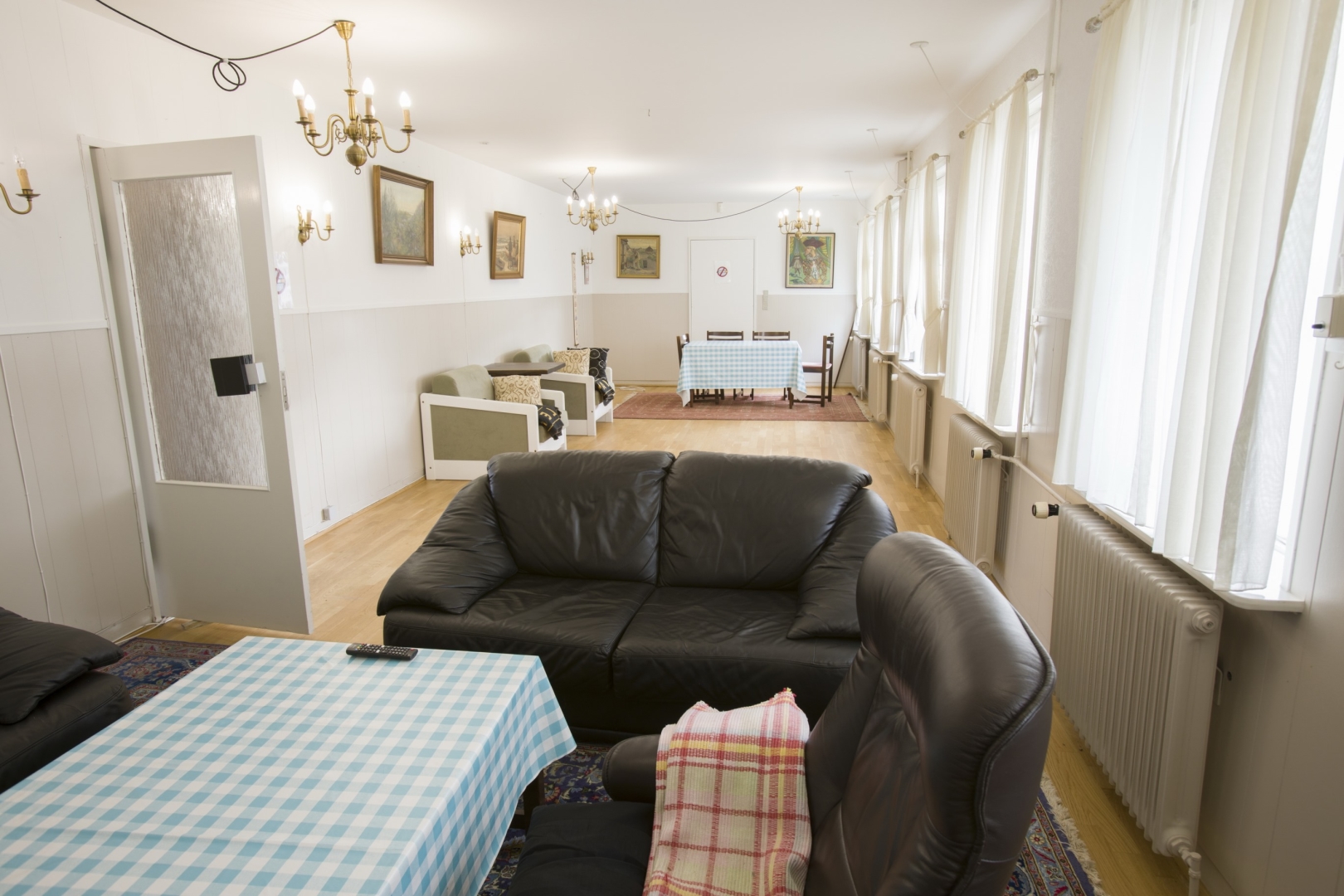 1. sal indeholder - fordelergang - 6 gode værelser - lille badeværelse med brus og 2 toiletter.