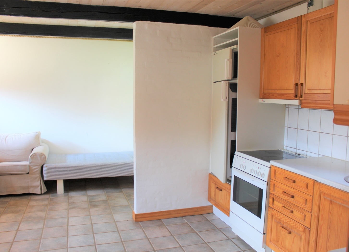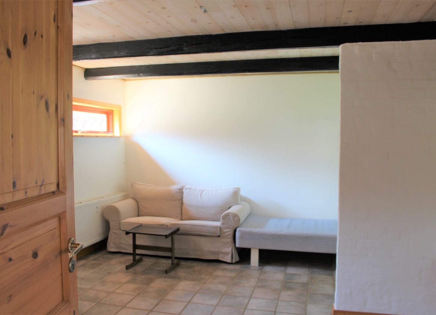 Anneks indeholder: Entré med trappe til 1. sal Badeværelse m. brusekabine Kombineret køkken med opholdsstue med synlige bjælker På 1. sal er der repos samt 1 soveværelse.