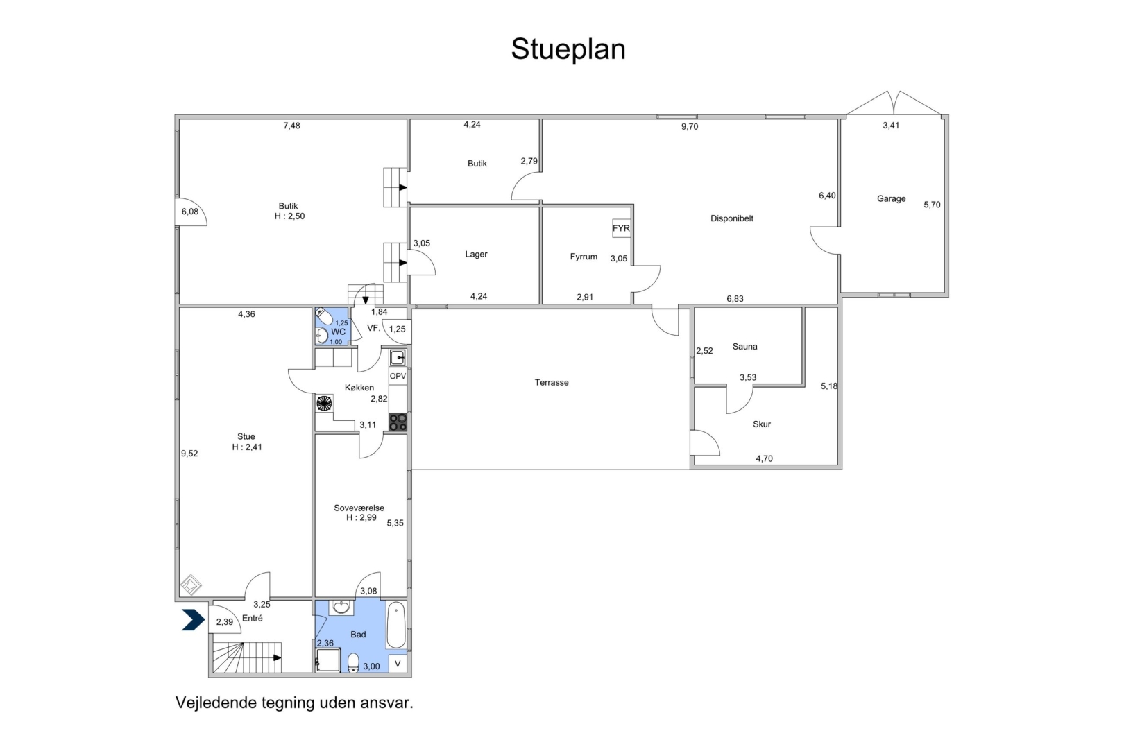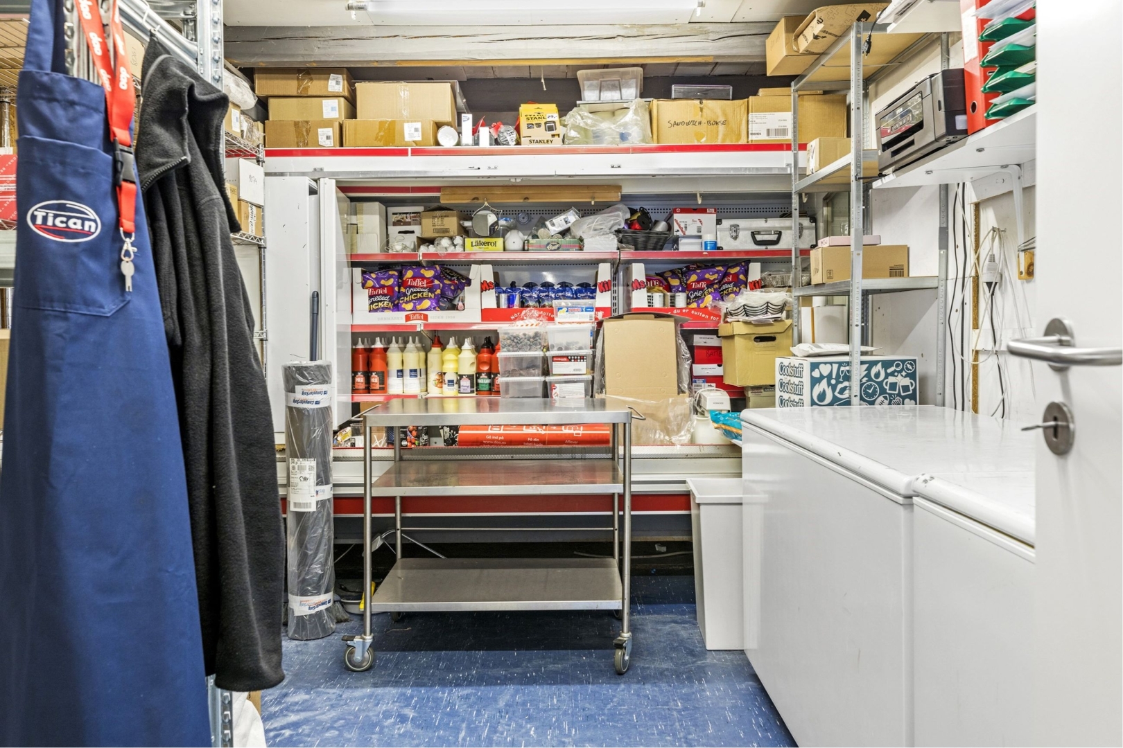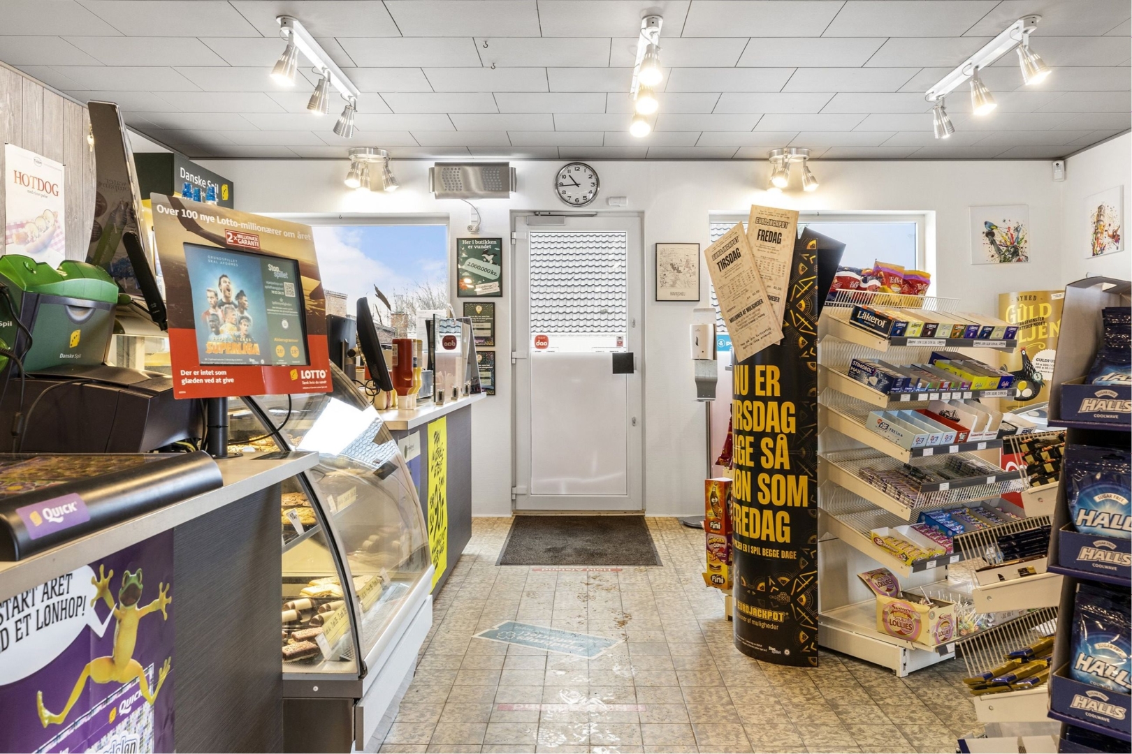 Butikslokalet har mange anvendelsesmuligheder. Drives i dag som velfungerende kiosk med klassiske kiosk-varer som slik, chips, øl og vand, tobaksvarer, kage samt franske hotdogs. Fastfood delen kan nemt udvides, hvis man har lyst til at lægge mere fokus herpå. Derudover er der en stor omsætning på tips og lotto, og kiosken fungerer også som byens pakkeshop. Der er endvidere en afdeling med salg af dyrefoder, samt træpiller og flaskegas. Gode lagerlokaler med masser af muligheder, da det har støbt gulv og udgang til garage samt trappe til loftrum.