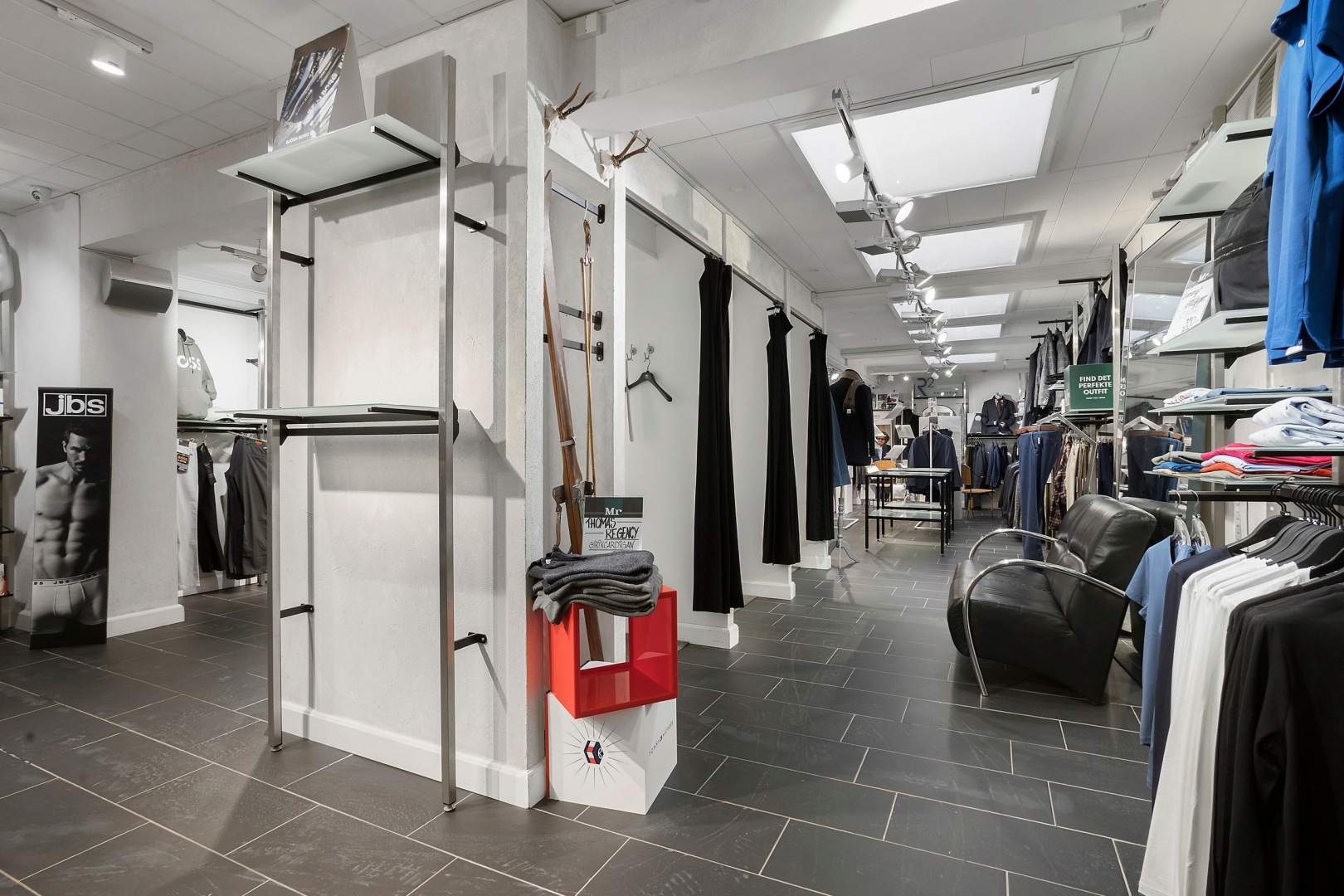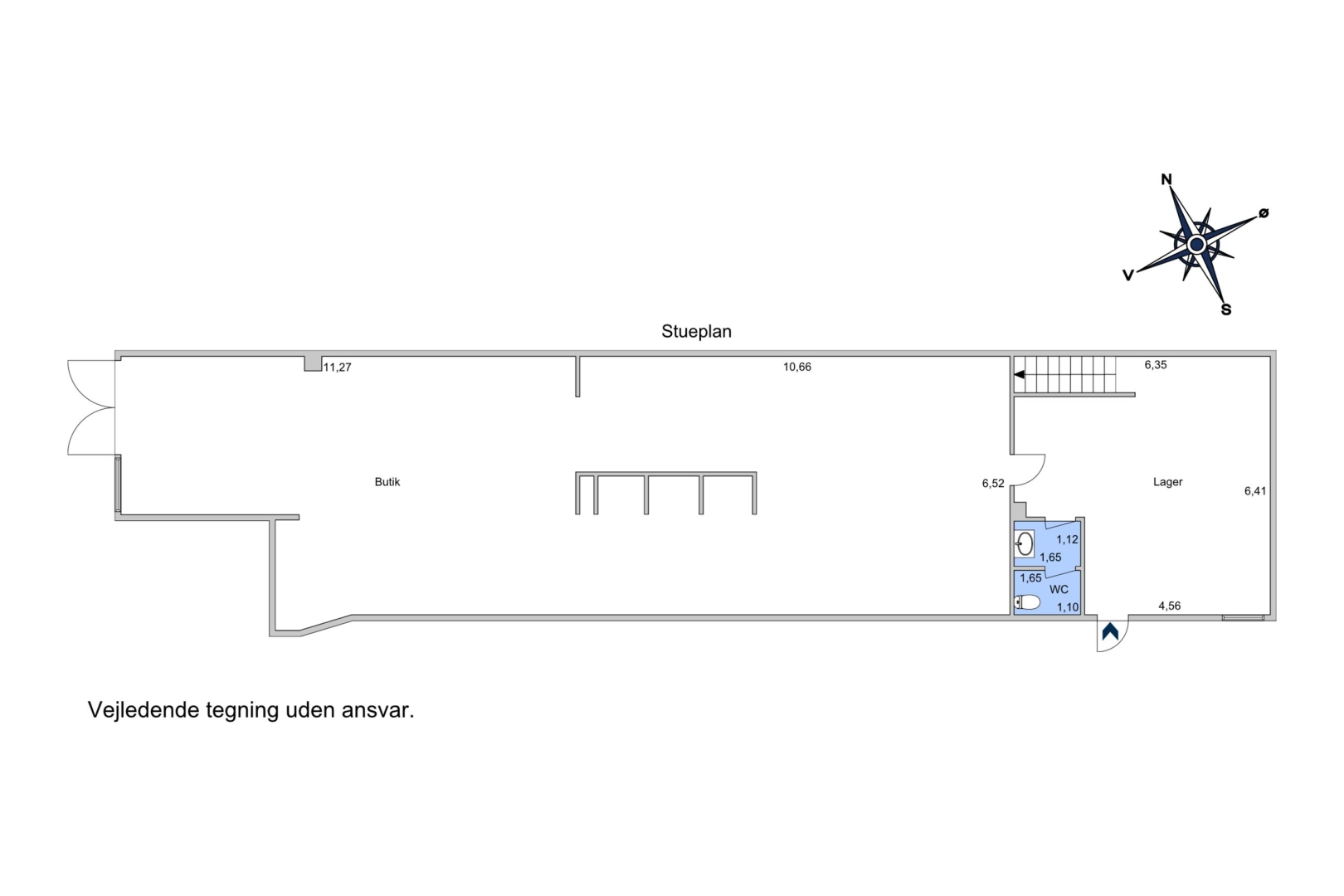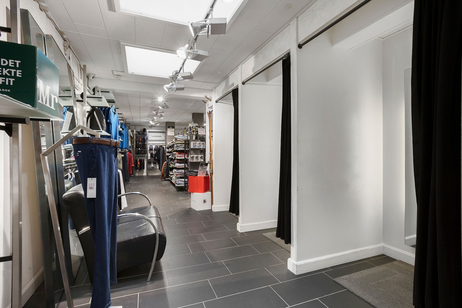 Lejemålet har i næsten 50 år fungeret som en MR-butik og har dermed en solid historik med et stærkt brand og et etableret kundepotentiale. Butikken byder på en indbydende, overdækket indgang med arkade-lignende detaljer, der giver perfekte muligheder for synlig udstilling og promovering. Butikslokalet er rummeligt og regulært, hvilket giver stor fleksibilitet til at indrette efter netop dine behov. Der er også et praktisk lager samt en trappe til en overetage, som rummer kontor, toilet og ekstra lagerplads, ideelt til opbevaring eller administration.