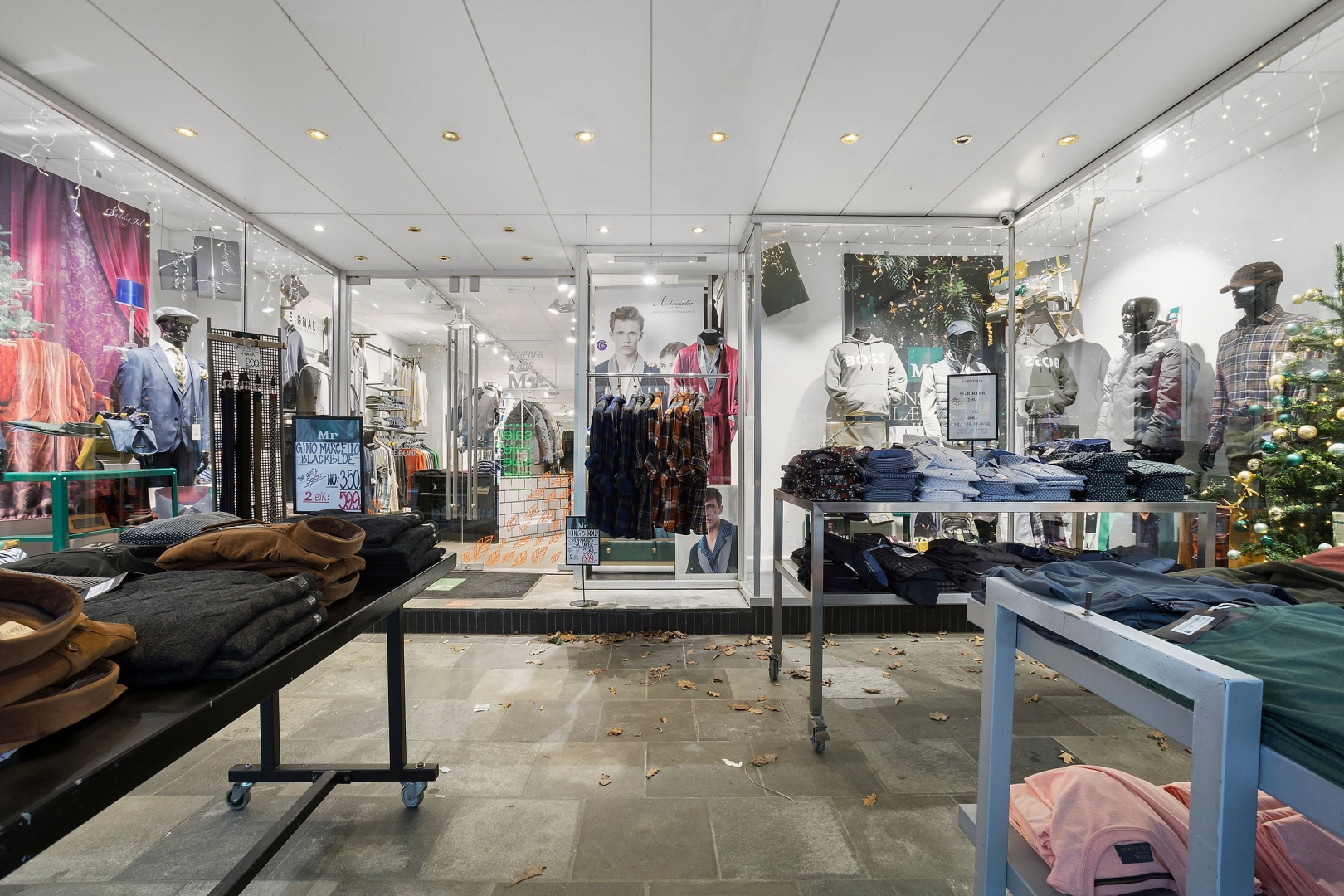 Velindrettet butikslokale med stor vinduesfacade mod gågaden