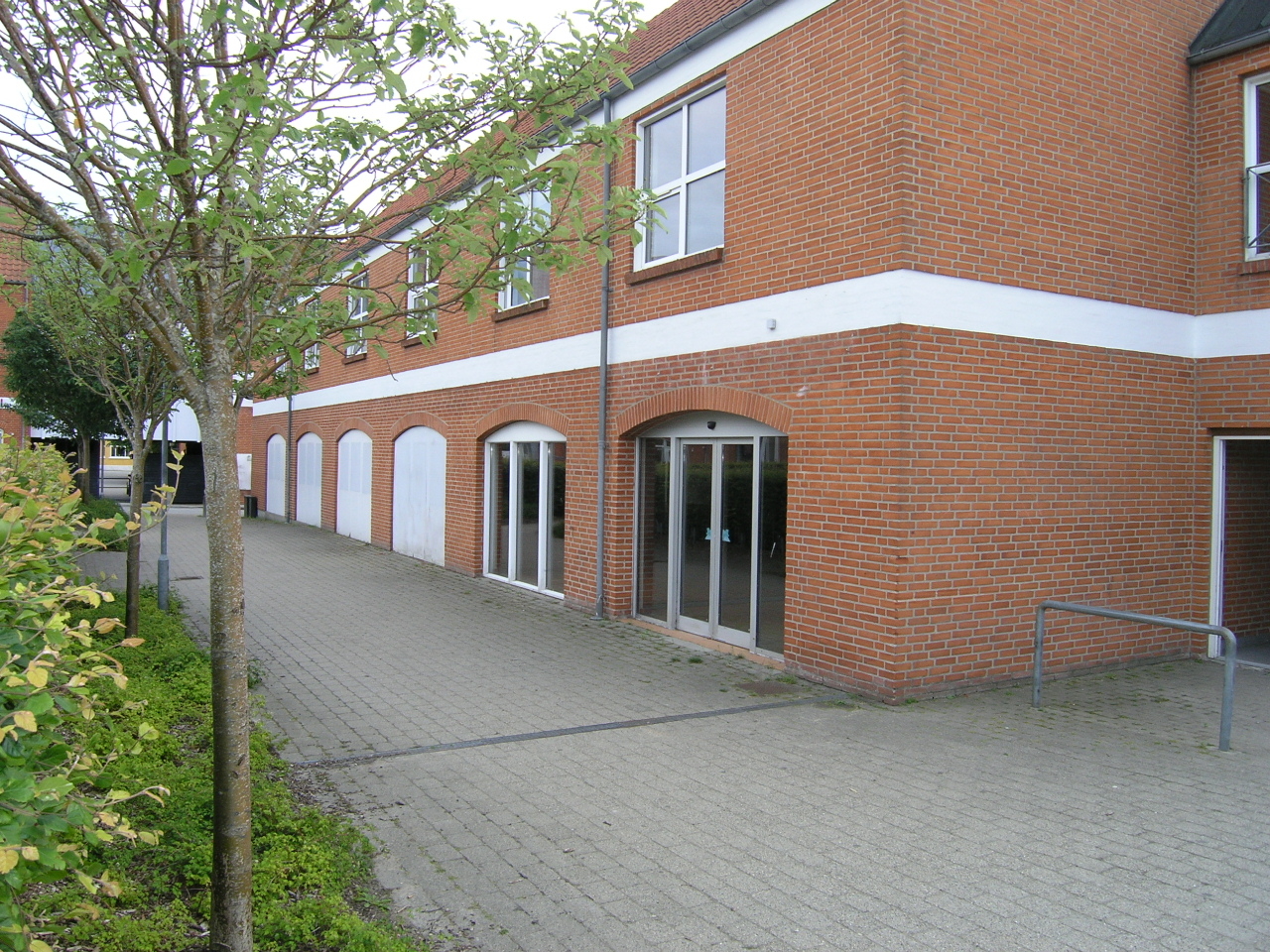 Lejemålet er opført i rødesten og er beliggende direkte ud til flot anlagt torv.