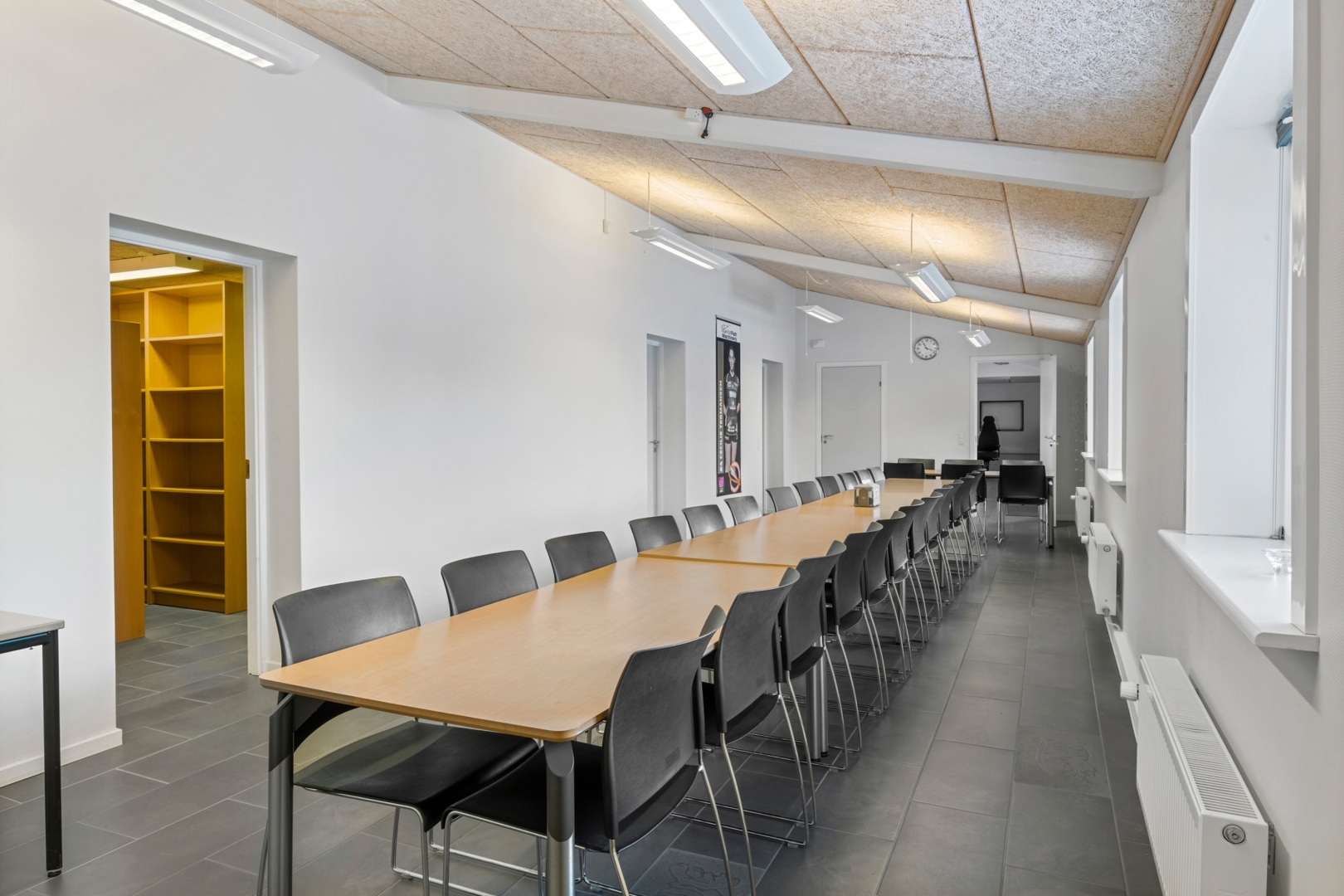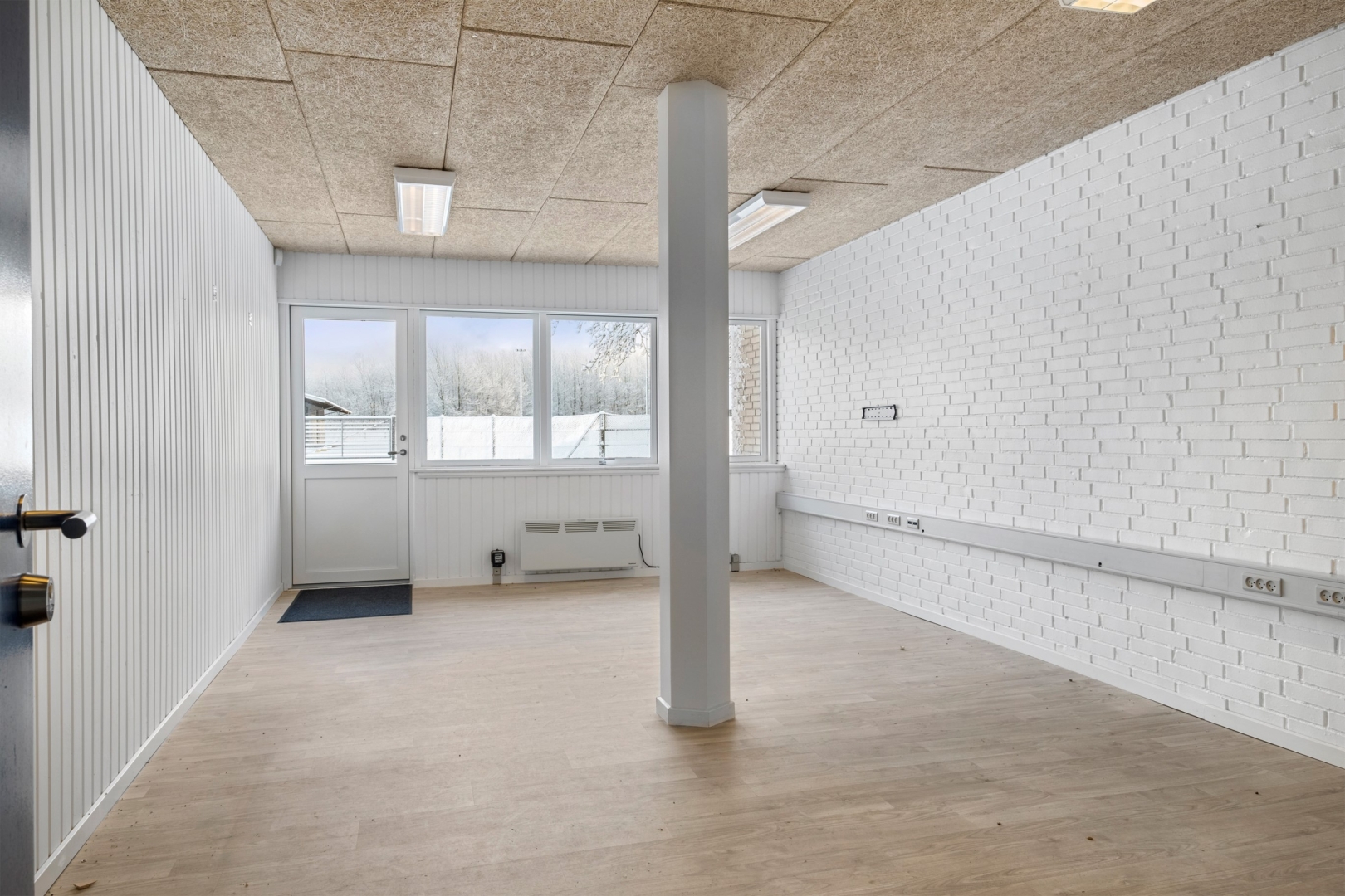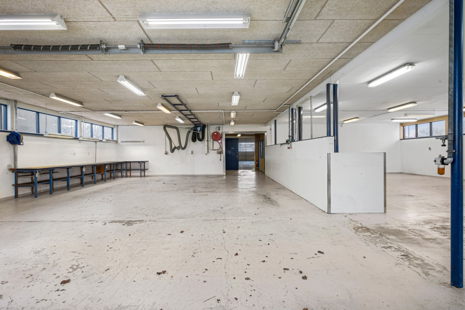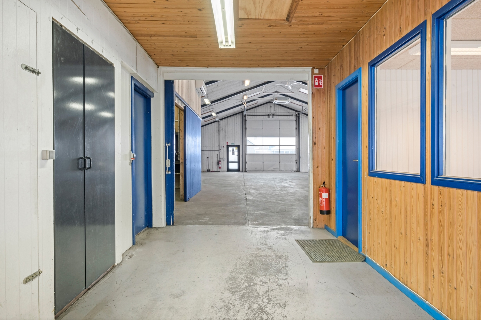Udover ovennævnte er der 2 sammenhængende bygninger hvor den ene er opført i gule mursten og den anden med sandwich elementer som indeholder, kontor, produktions lokale - toilet og omklædning, mellemgang til lagerhal med god lofts højde og aluport i gavl. I mellem gangen er der adgang til fint kontor.