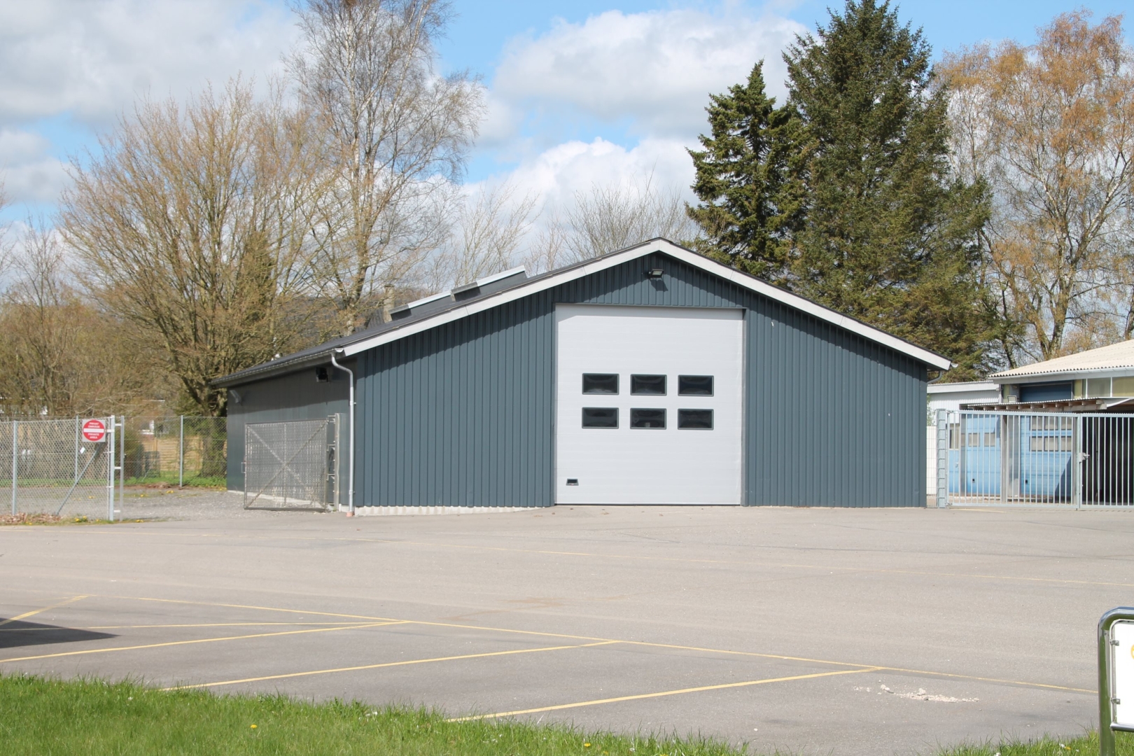 Produktionslokalerne er opdelt i 2 store regulære haller med toilet og med aluport i hver hal. Der er endv. punktudsugning til 6 arbejdspladser - svingkran, træbeton og isolerings batts som loft. Der er loft til kipe.