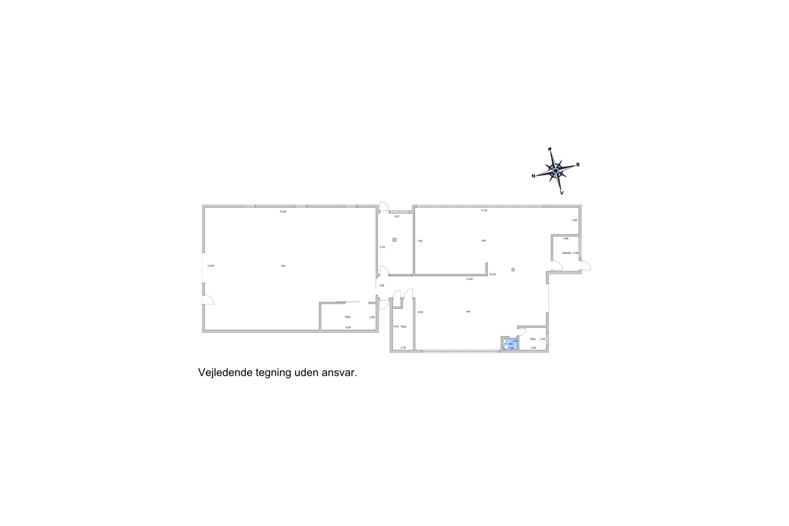 Der er endv. adgang til afsyrings rum og udviklings rum - begge rum med aluport.