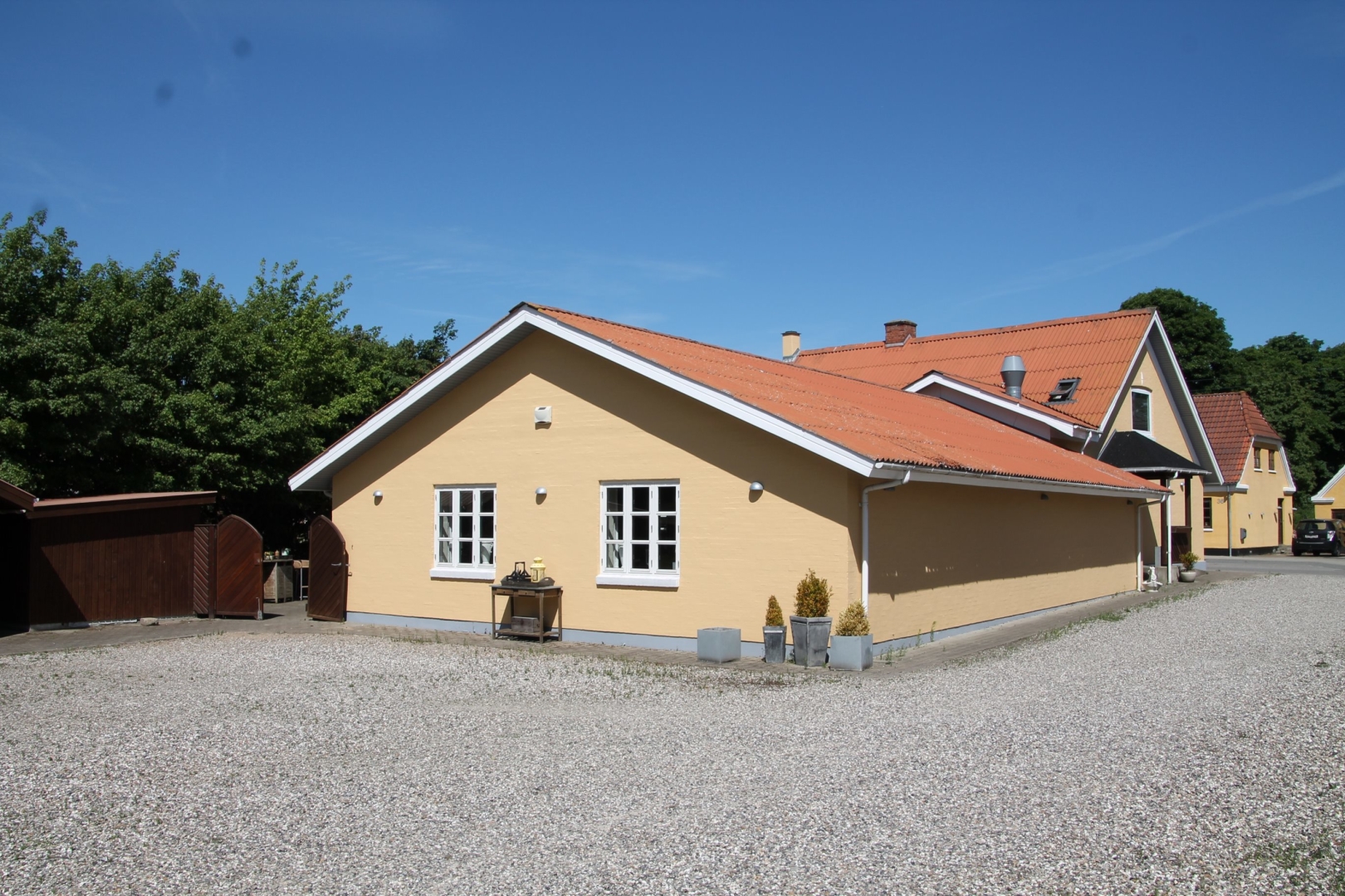 Særdeles velholdte bygninger der tidligere har været anvendt til Lendum Kro.