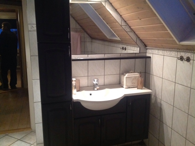 Fra anretter rummet er der trappe til overetage der indeholder fin lille lejlighed med opholdsstue - tekøkken - 2 værelser - soveværelse - pænt badeværelse med bruseniche.