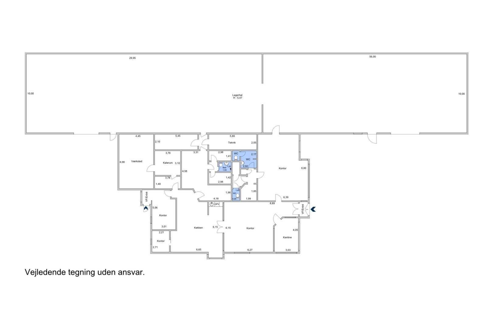 ·Andre praktiske faciliteter: Teknikrum, container rum, el værksted, aktivitetsrum, omklædningsrum med toilet og bad, grovkøkken, serverrum og kølefryserum anvendt som lager.