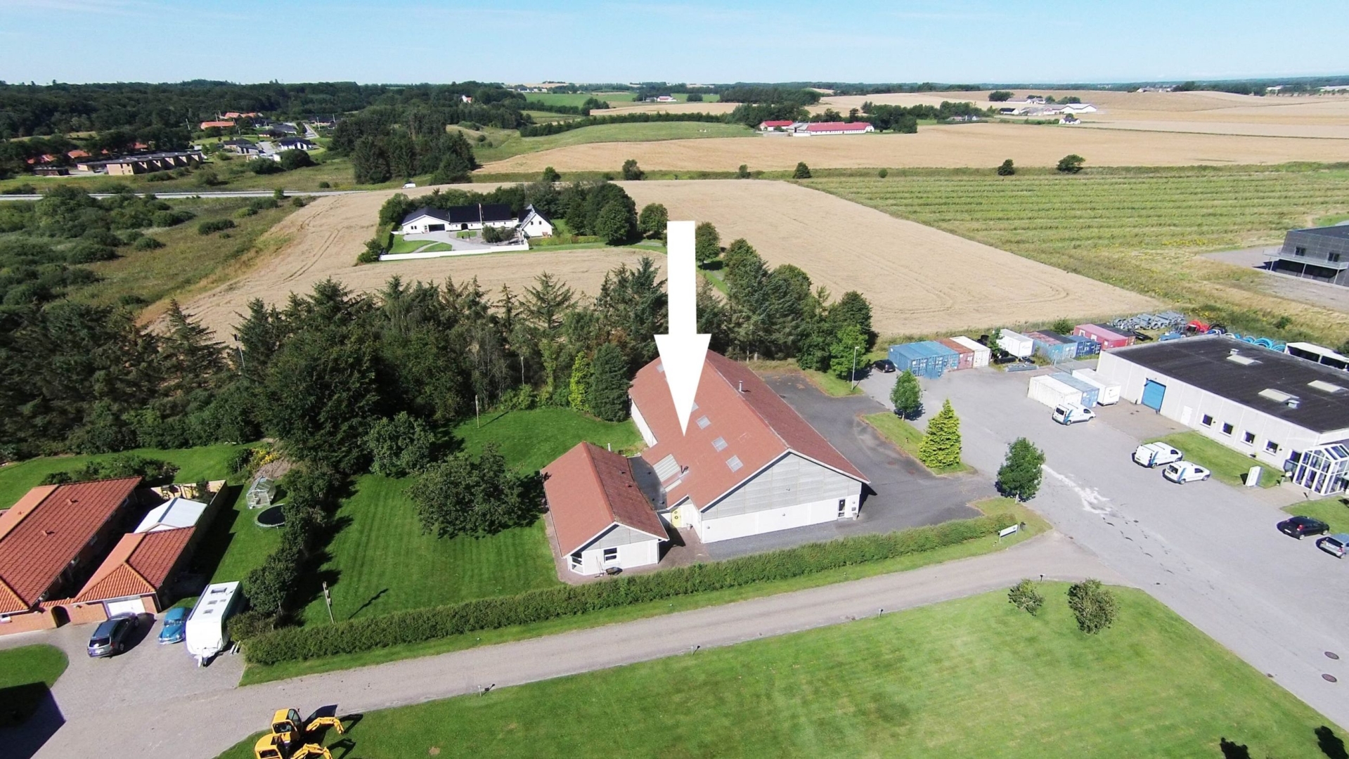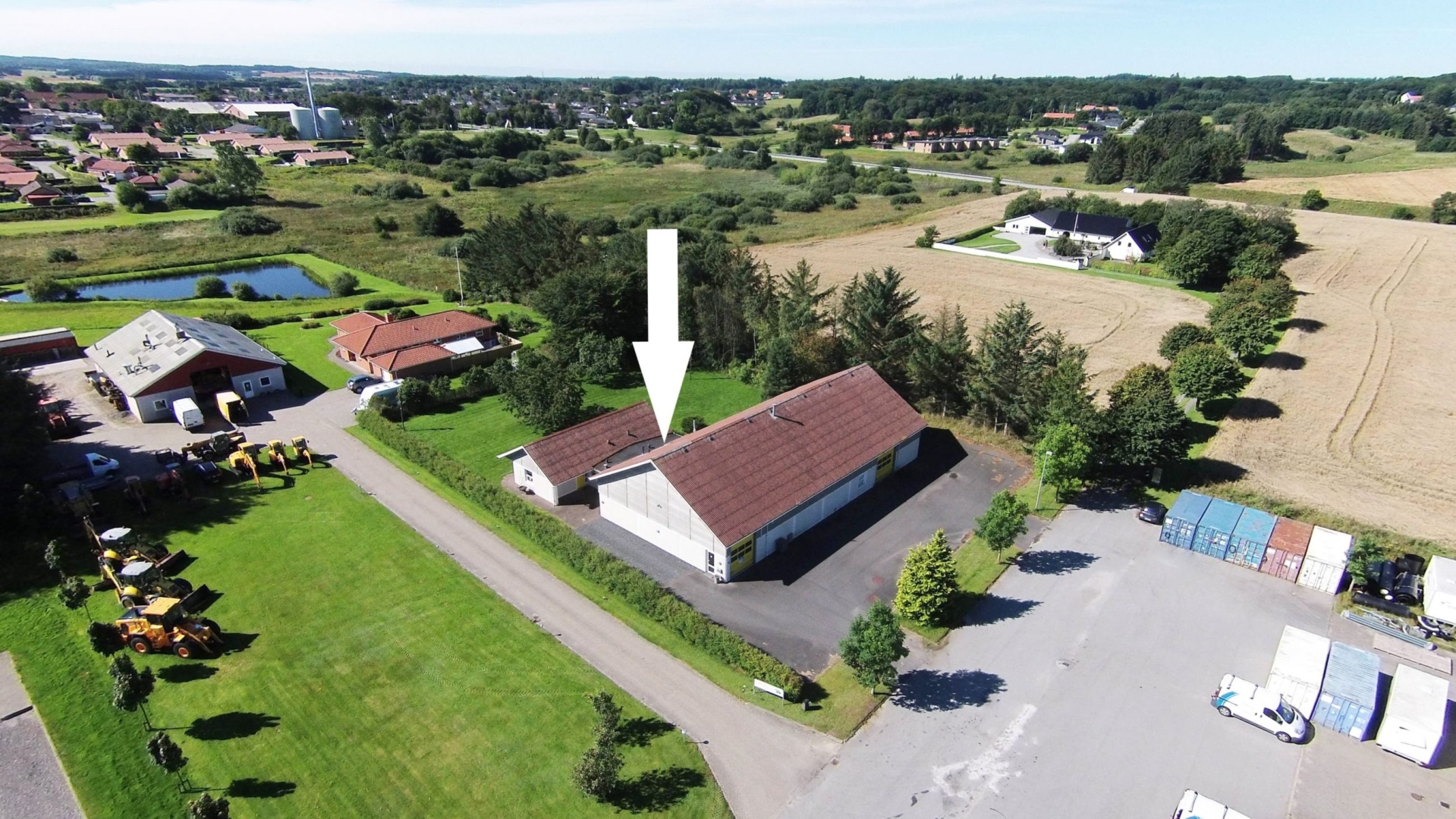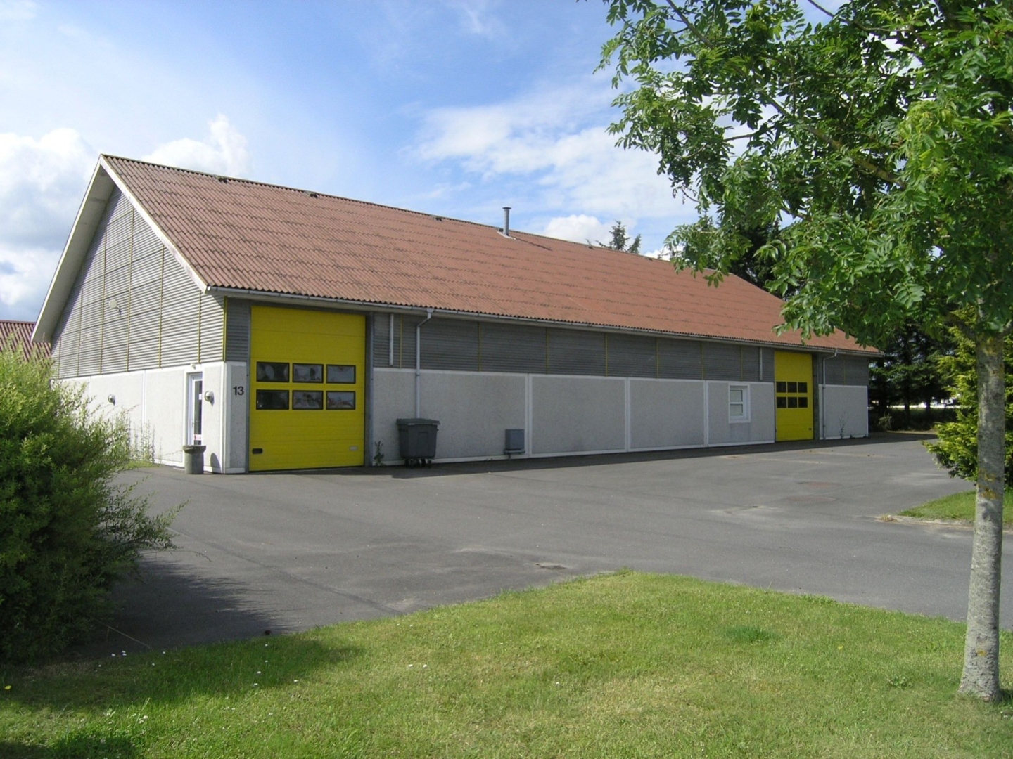 Produktions- og lagerejendom med en sidefrihøjde på 4,5 m og med fri loftshøjde på 8 meter. Hallen er med malet støbt gulv og der er fundament til 2 svingkraner 1000 kg samt 2 aluporte. Der er fast grundbelysning i værkstedshallen.